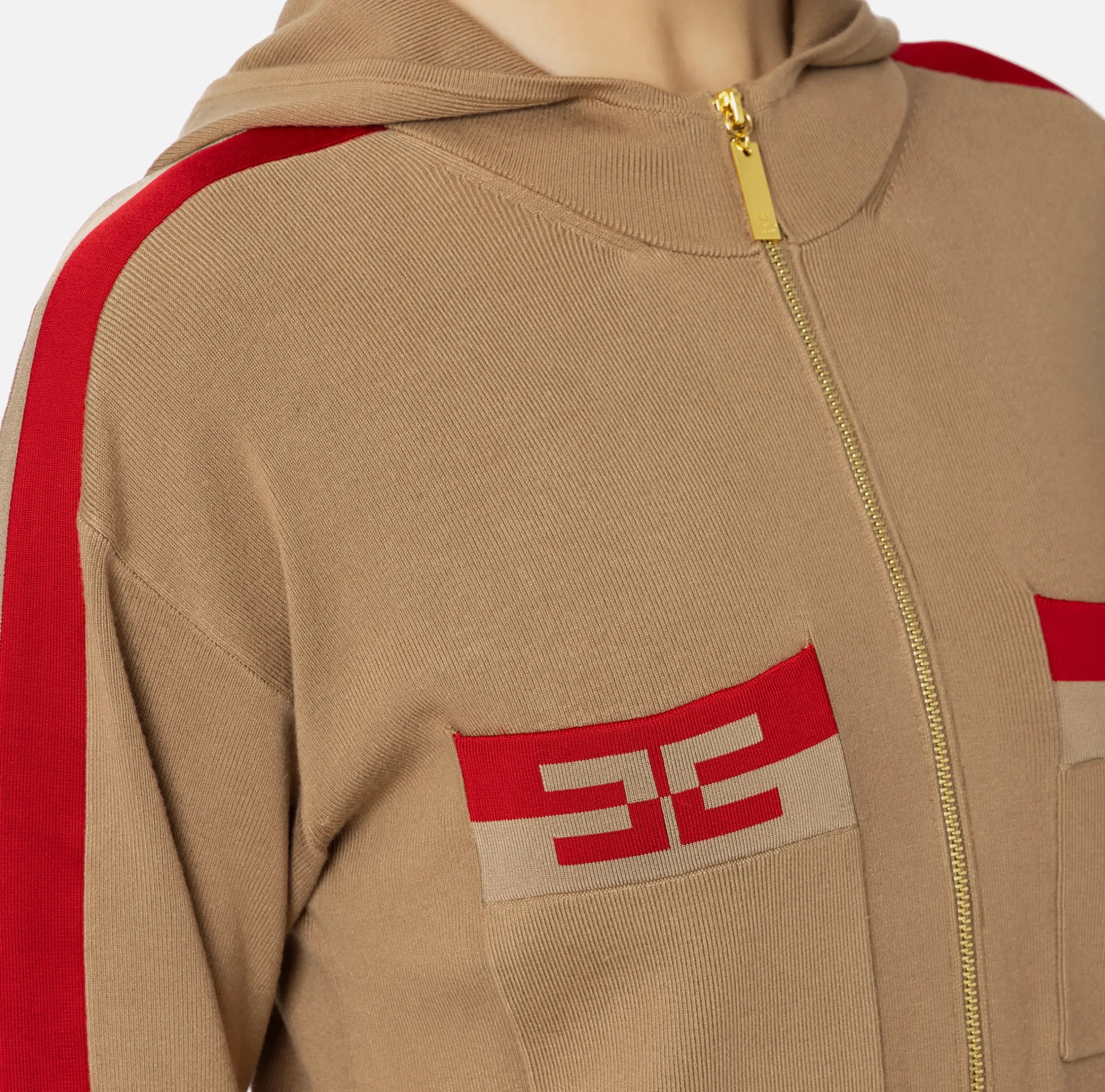 Maglieria E Felpe|Elisabetta Franchi Felpa cropped in viscosa con bande logo Camel/RedPassion