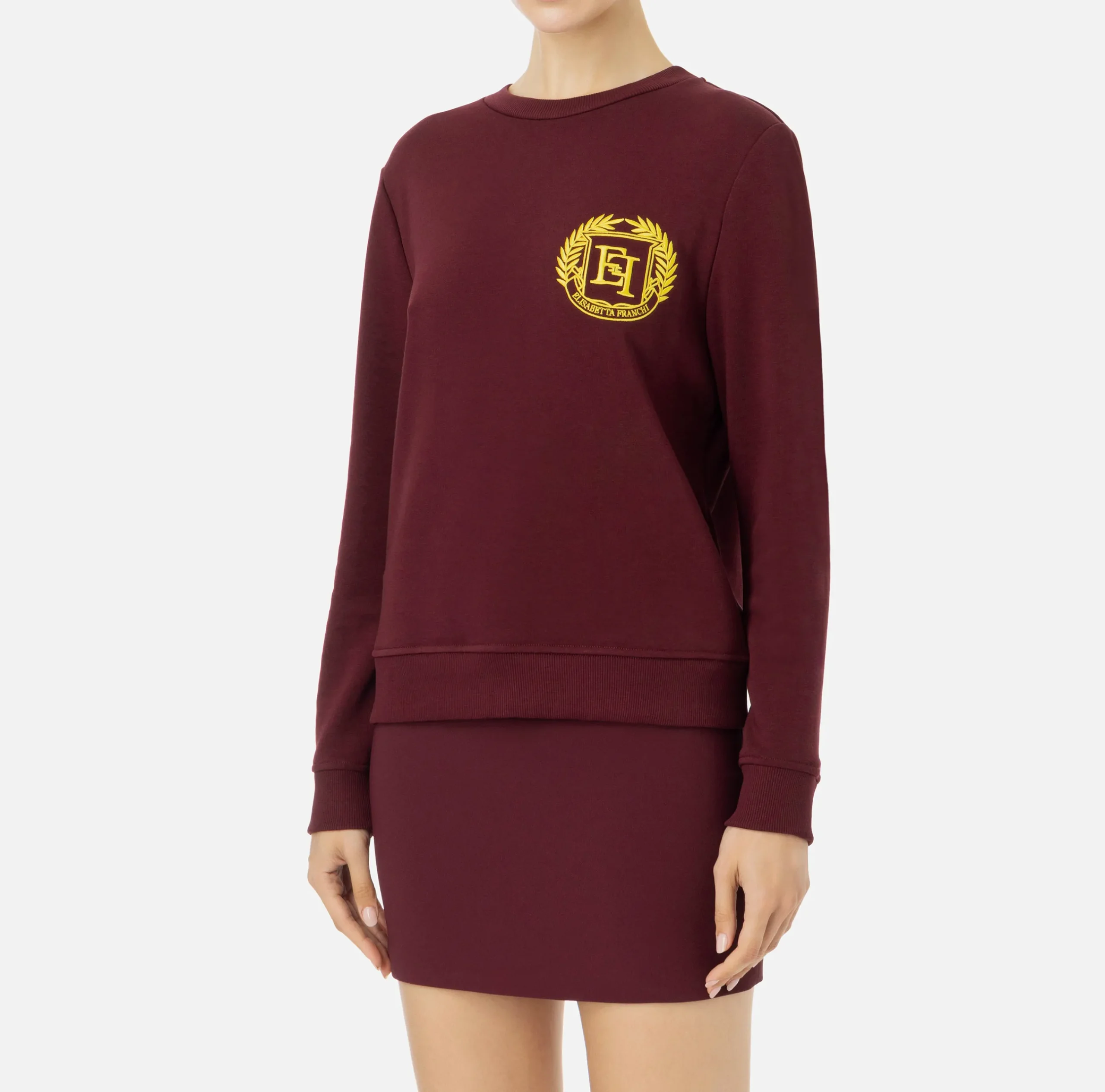 Maglieria E Felpe|Elisabetta Franchi Felpa in cotone con ricamo stemma RougeNoir