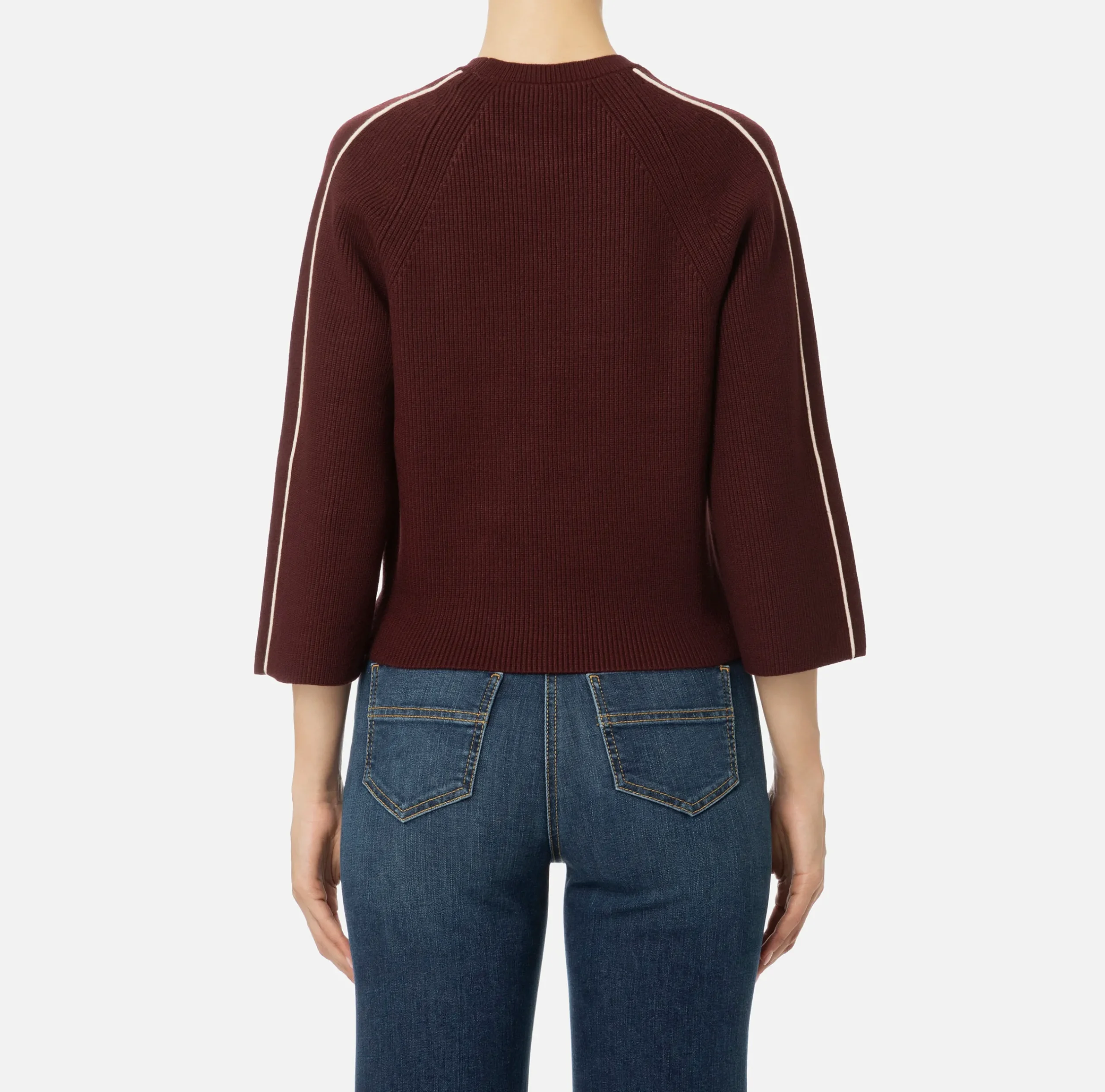 Maglia cropped in viscosa punto pannocchia con maniche raglan. È caratterizzata da patch logo ricamato davanti e bande in punto stoffa sulle spalle con profili in contrasto colore.