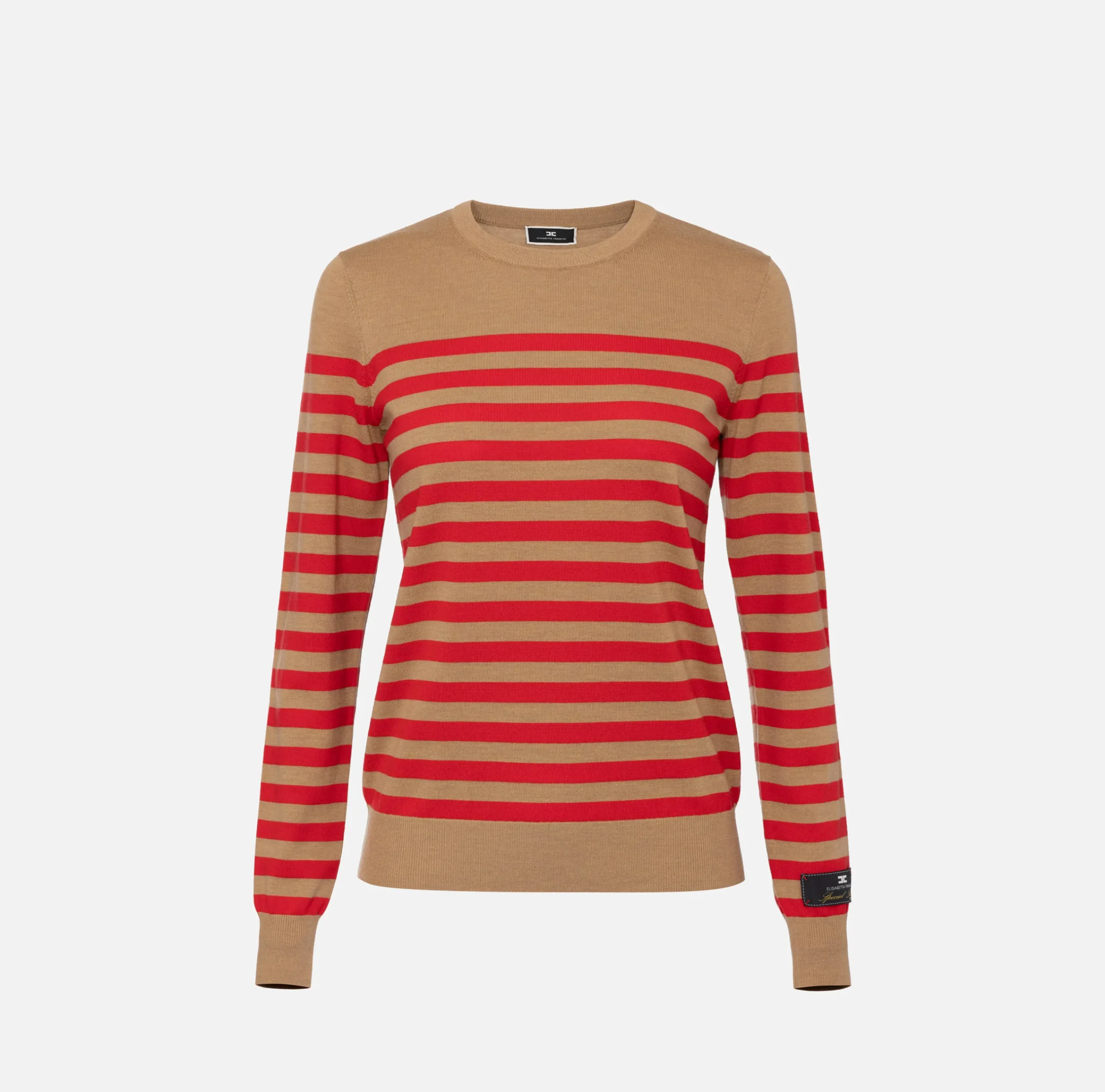 Maglieria E Felpe|Elisabetta Franchi Maglia in lana a righe Camel/RedPassion
