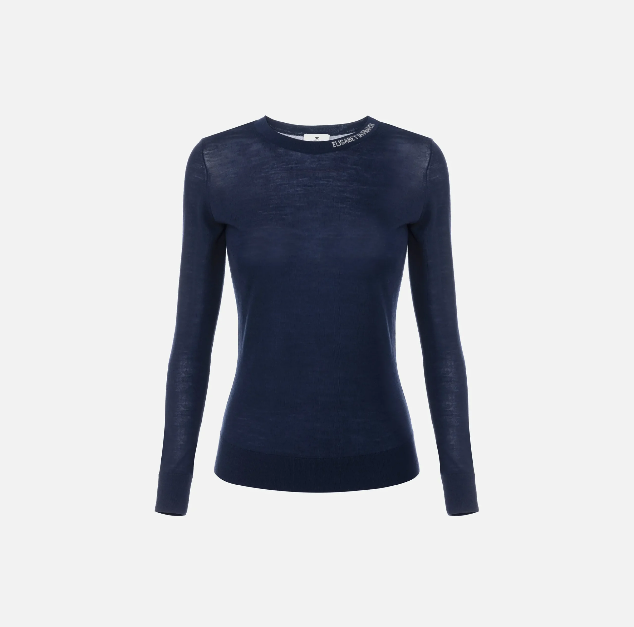 Maglieria E Felpe|Elisabetta Franchi Maglia in lana merino con logo jacquard in contrasto Navy