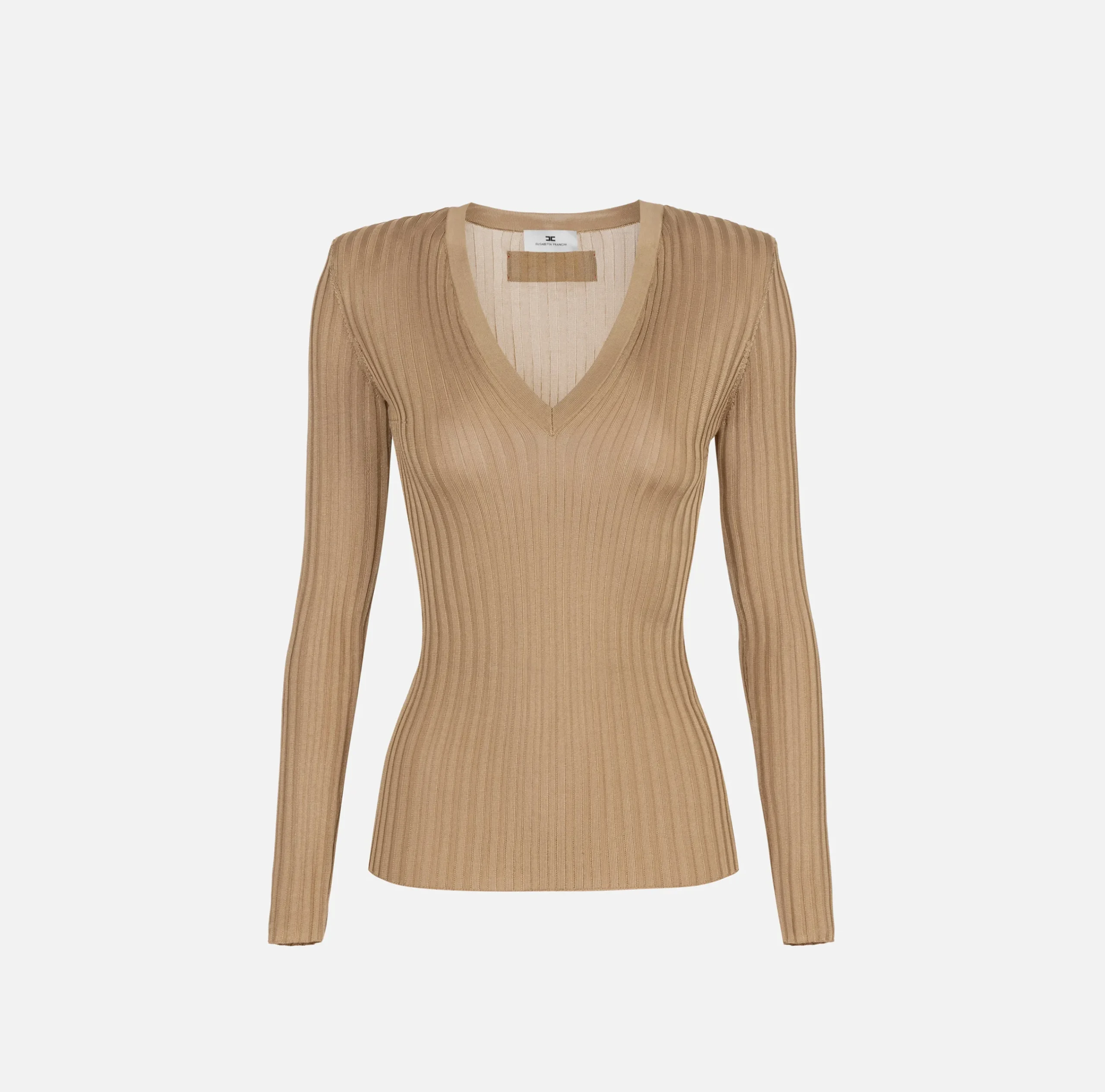 Maglieria E Felpe|Elisabetta Franchi Maglia in viscosa lucida a costine Camel