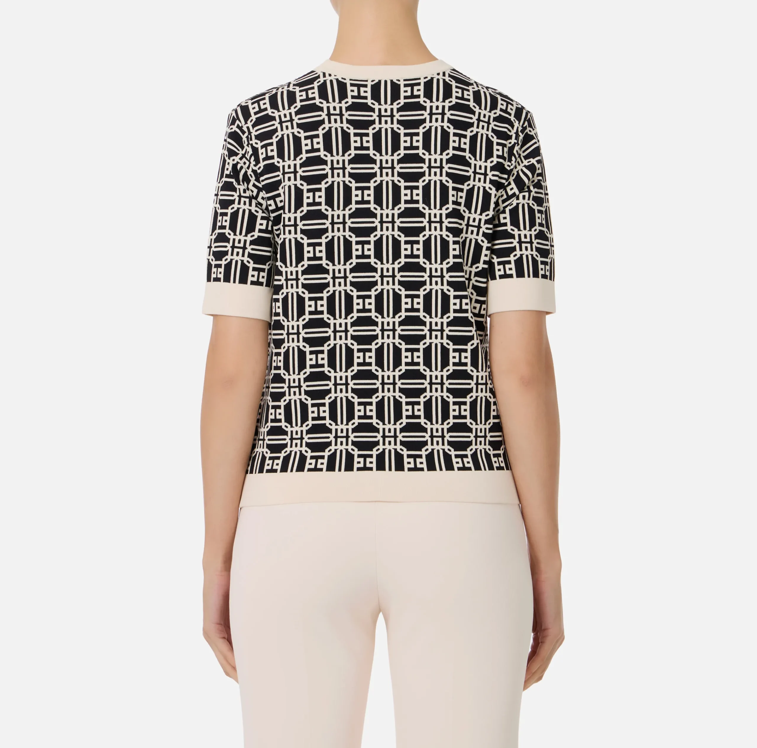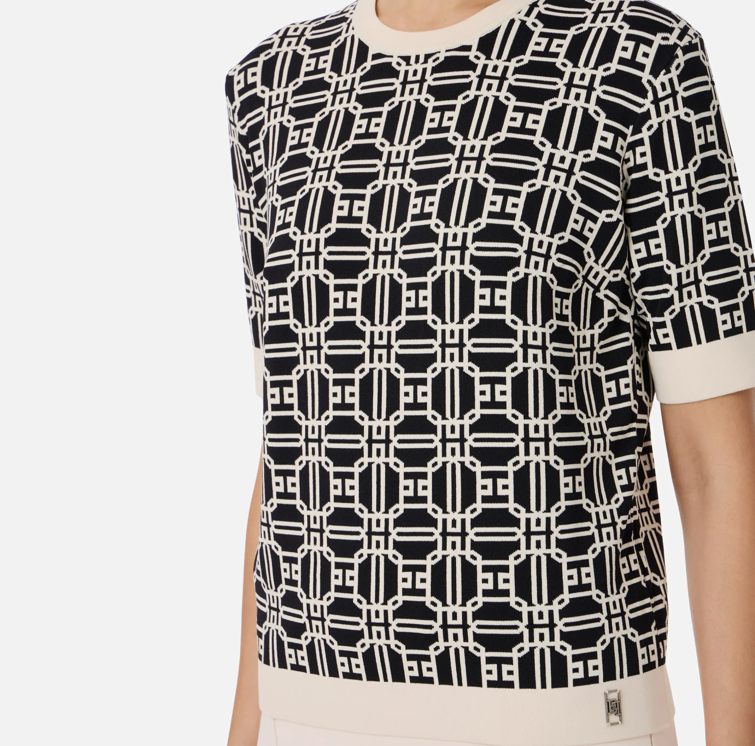 Maglia in misto viscosa stampa logo jacquard a maniche corte con finiture in contrasto colore.