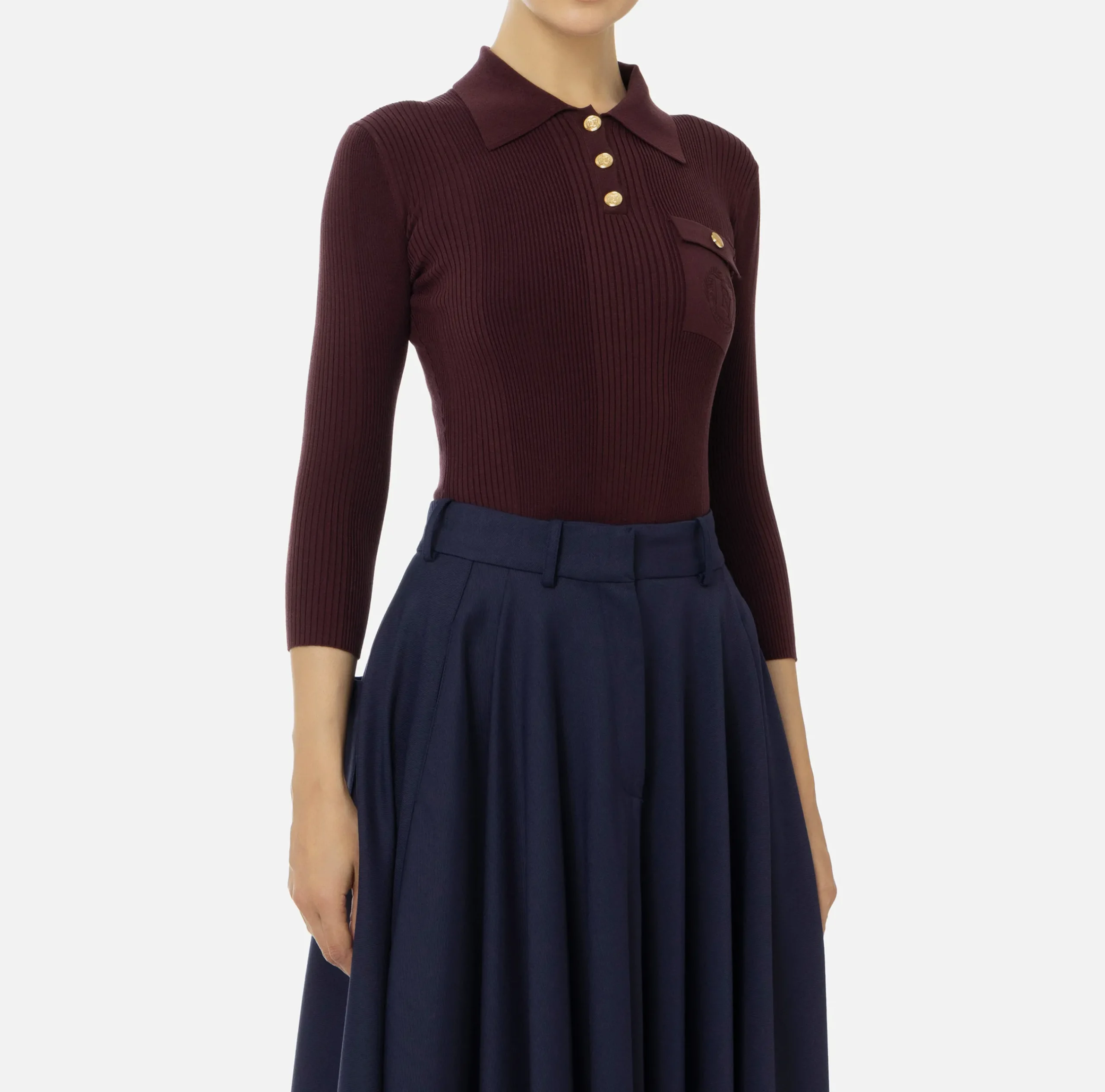 Be the first to review “Maglieria E Felpe|Elisabetta Franchi Maglia polo in lyocell e seta a costine con ricamo logo RougeNoir” Annulla risposta