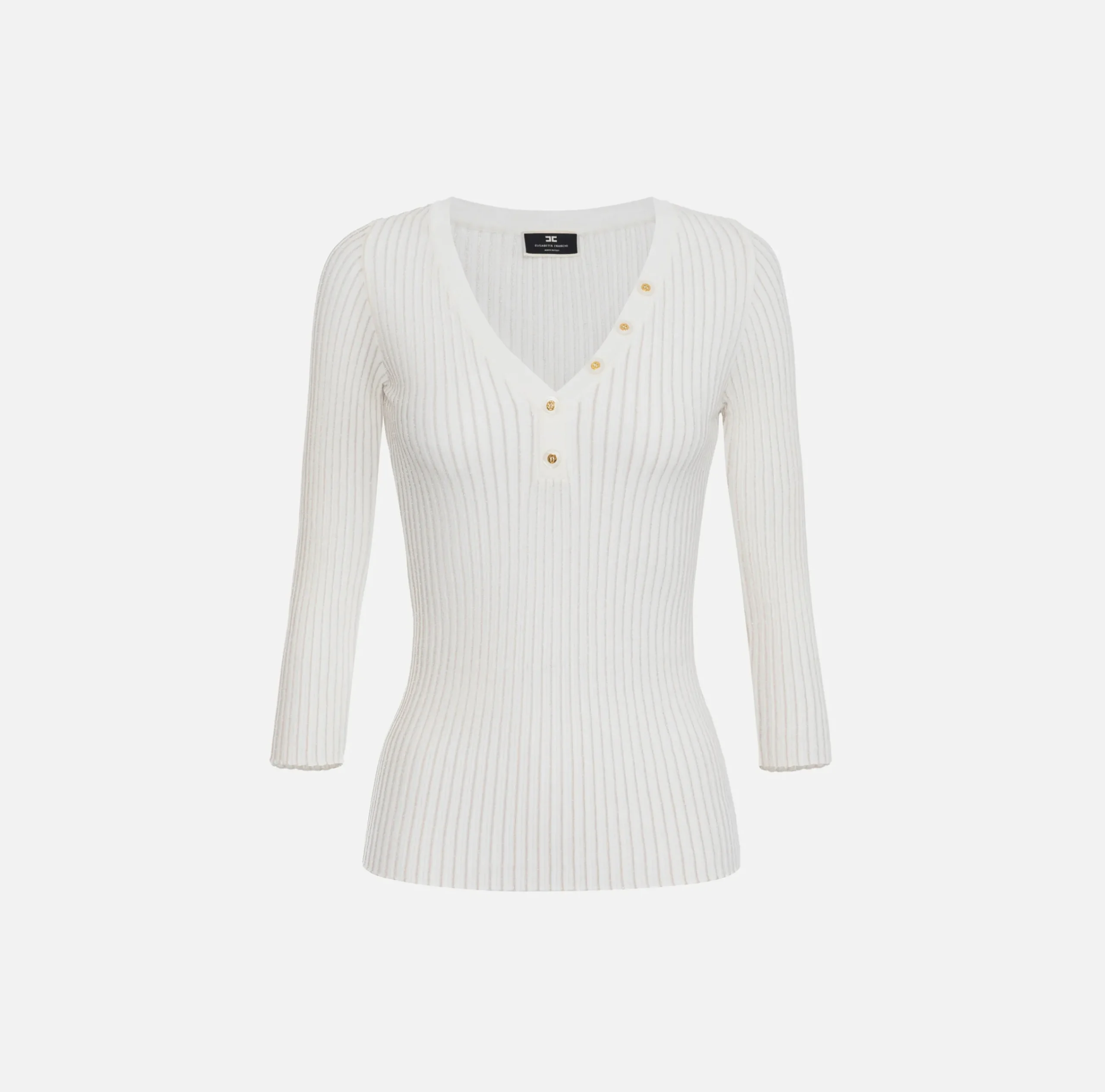 Maglieria E Felpe|Elisabetta Franchi Maglia scollo a V in viscosa e lurex a costine Avorio