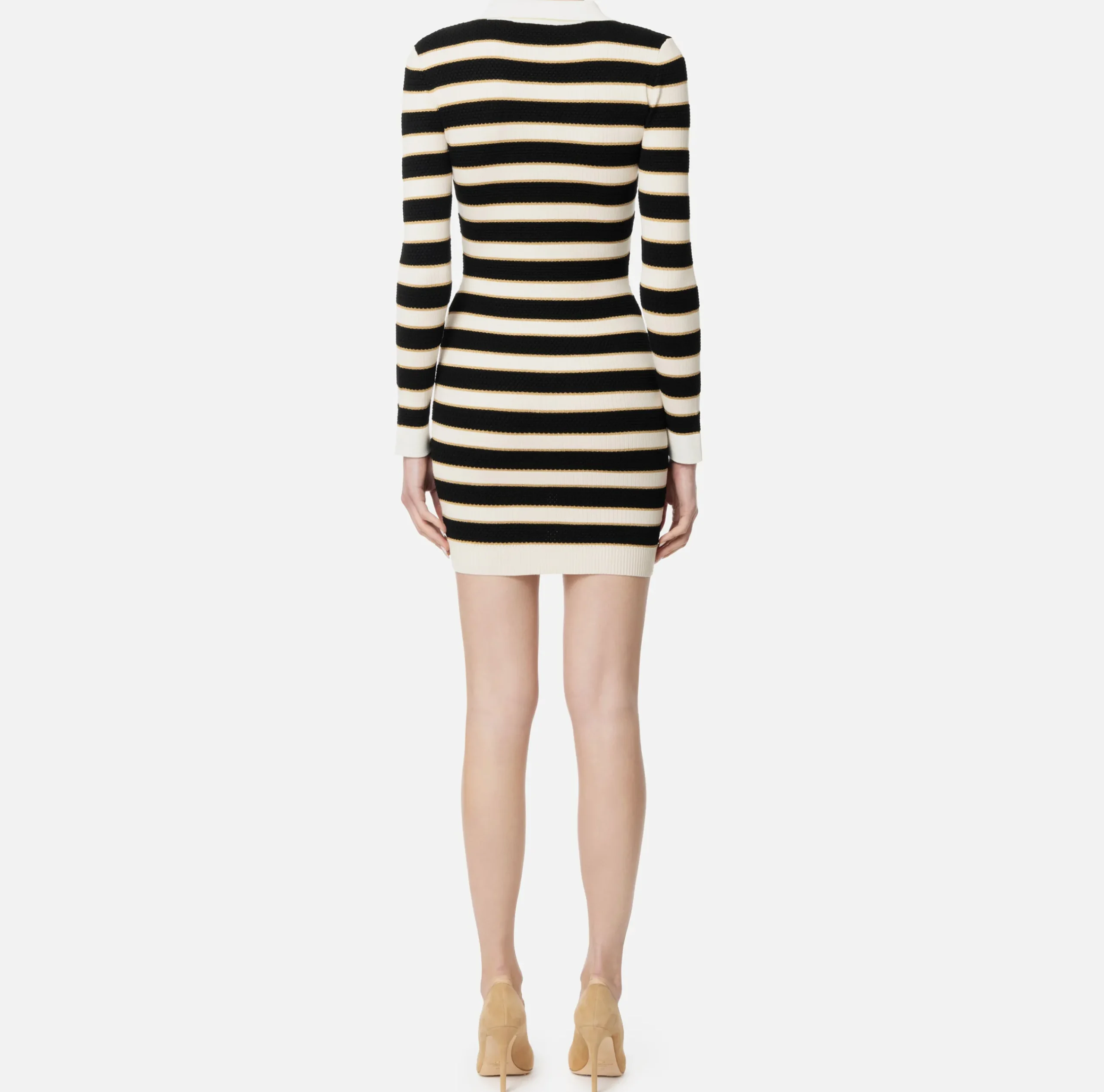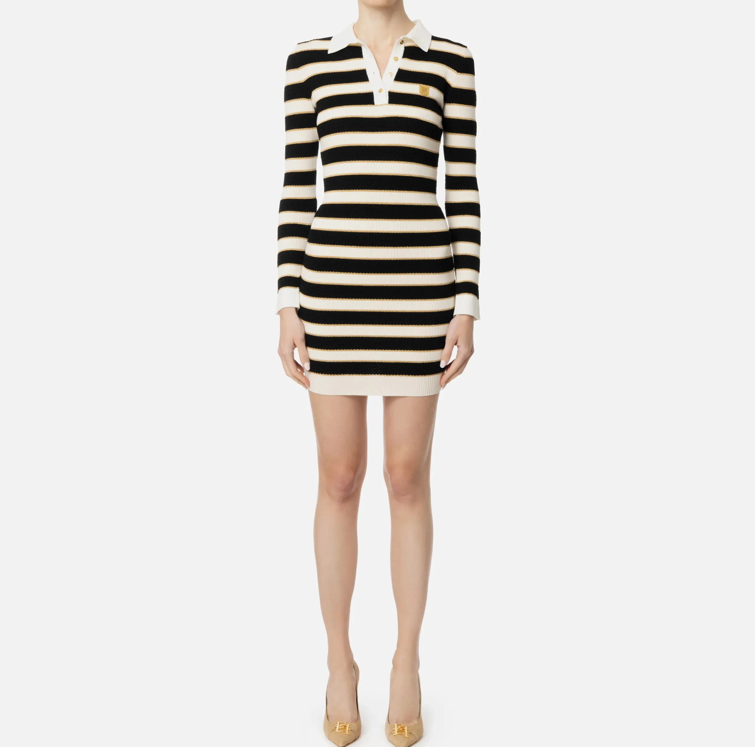 Mini Abiti|Abiti In Maglia|Elisabetta Franchi Miniabito a polo in viscosa lurex a righe Burro/Nero