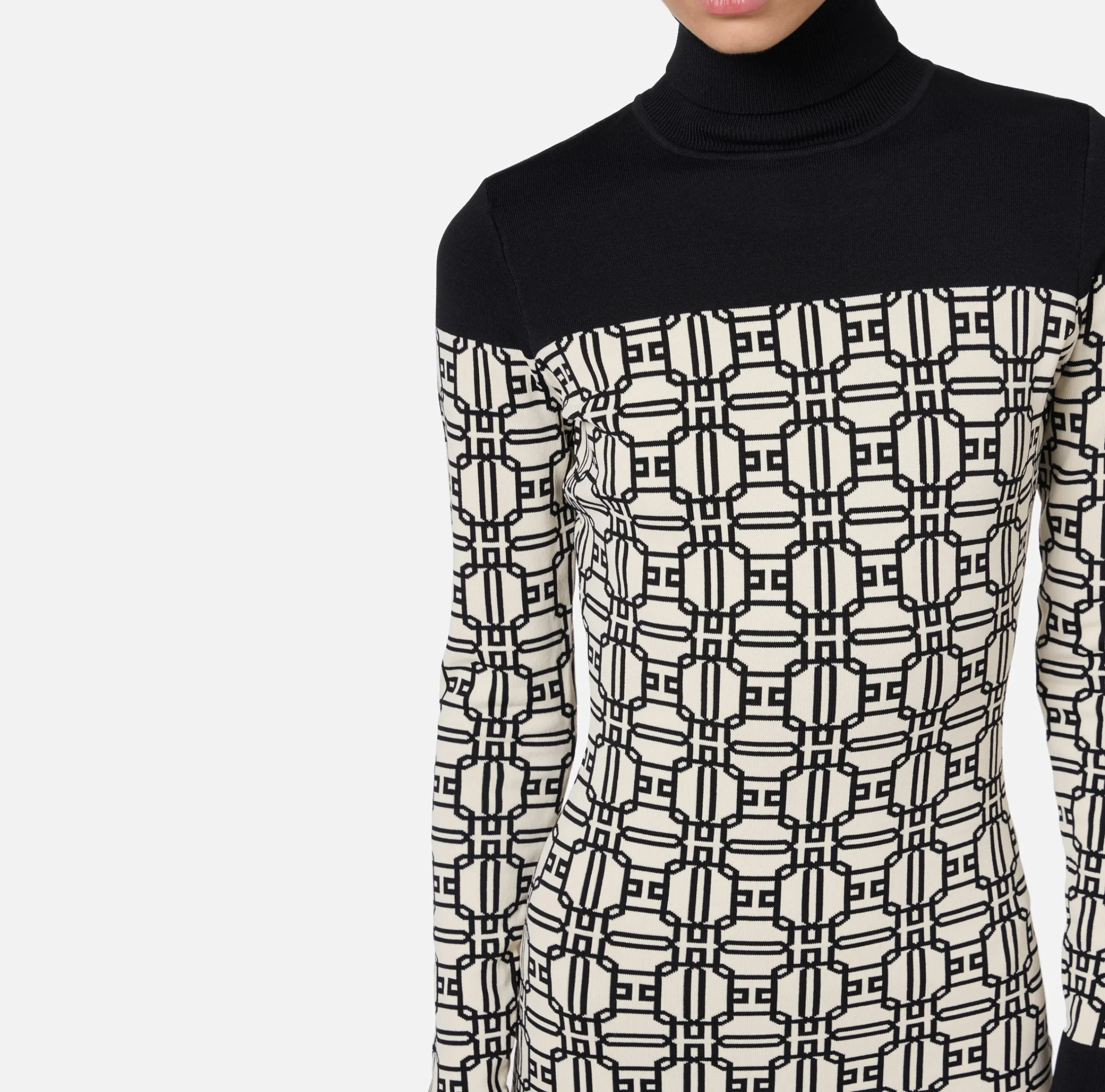 Mini Abiti|Abiti In Maglia|Elisabetta Franchi Miniabito dolcevita logo jacquard Burro/Nero