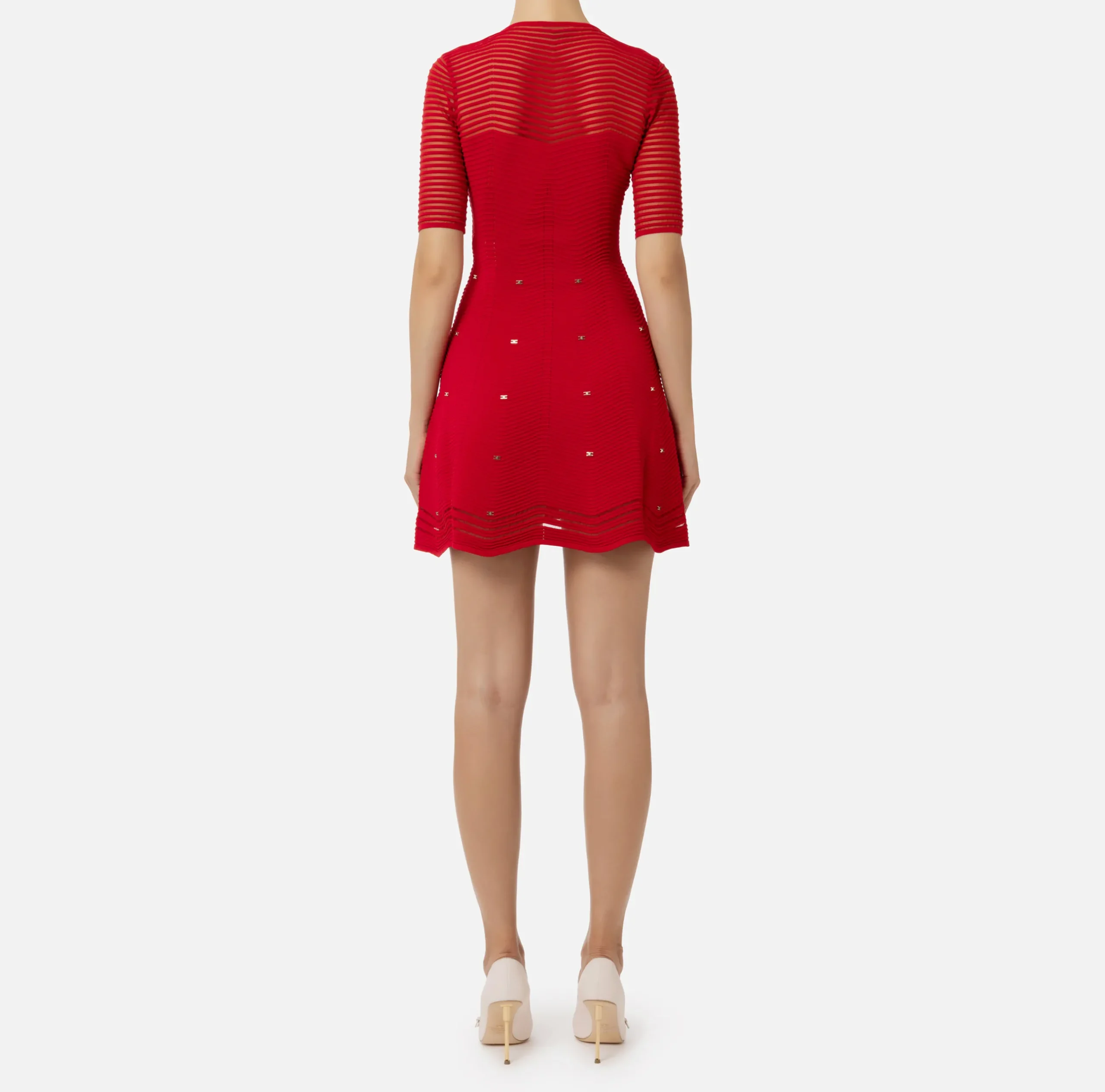 Mini Abiti|Abiti In Maglia|Elisabetta Franchi Miniabito in viscosa motivo chevron con borchie RedPassion