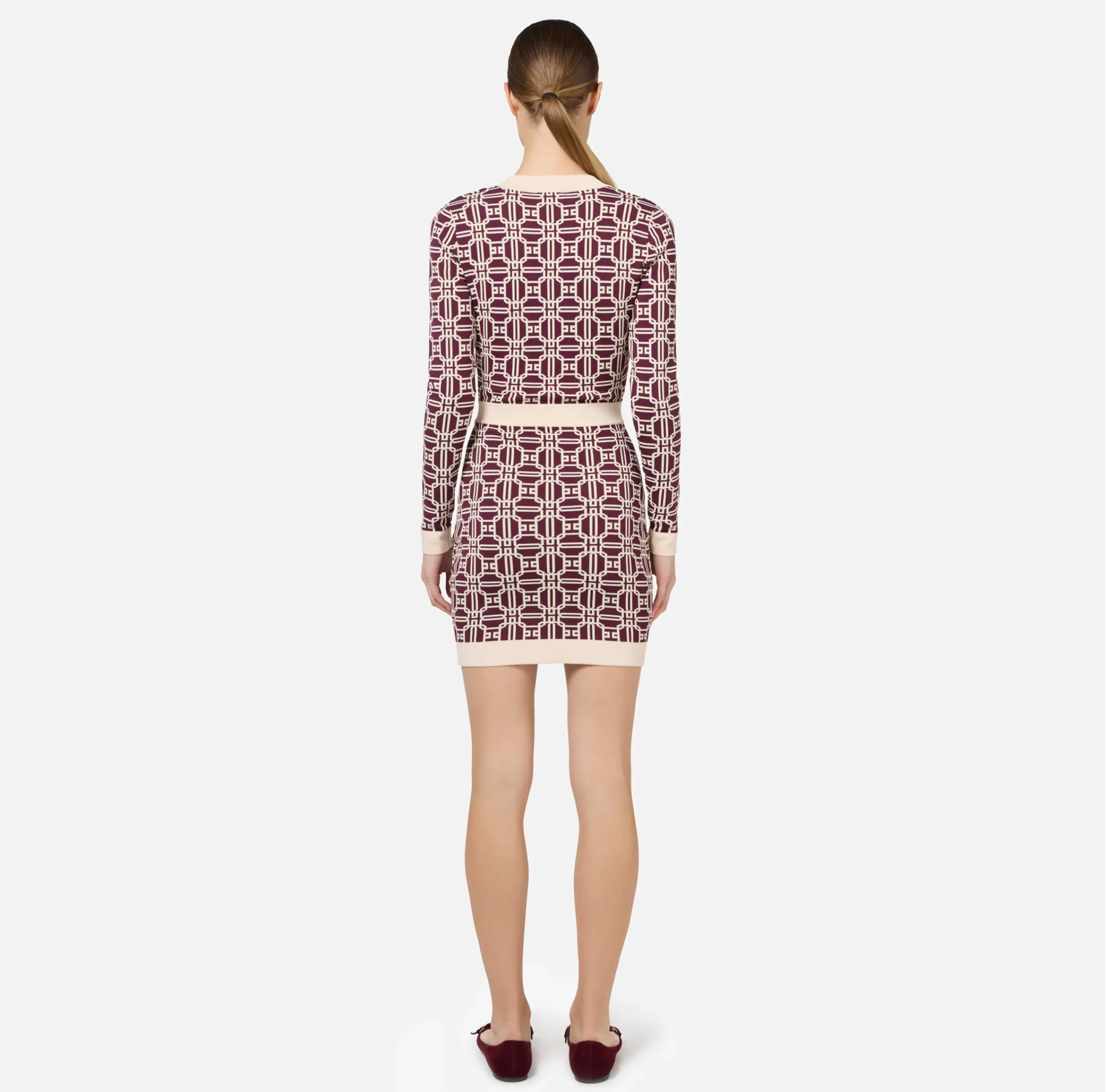 Mini Abiti|Abiti In Maglia|Elisabetta Franchi Miniabito logo jacquard RougeNoir/Burro