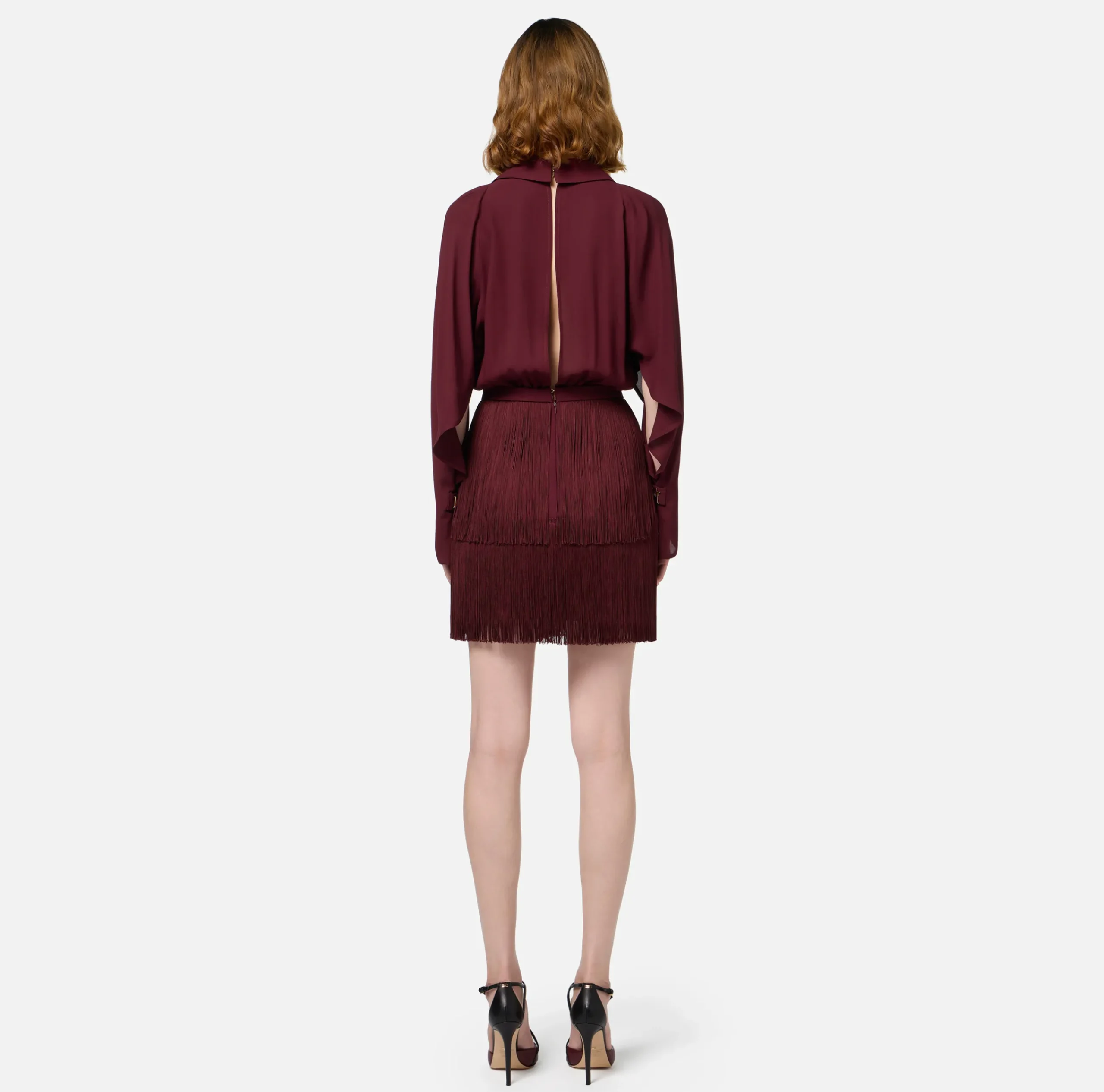 #html-body [data-pb-style=Q6PNVEQ]{margin:0;padding:0}Abito con frange sulla gonna in crêpe, camicia in georgette, e foulard trattenuto da bottoni in metallo dorato. Il punto vita è enfatizzato da una cintura in metallo dorato con charms logo.