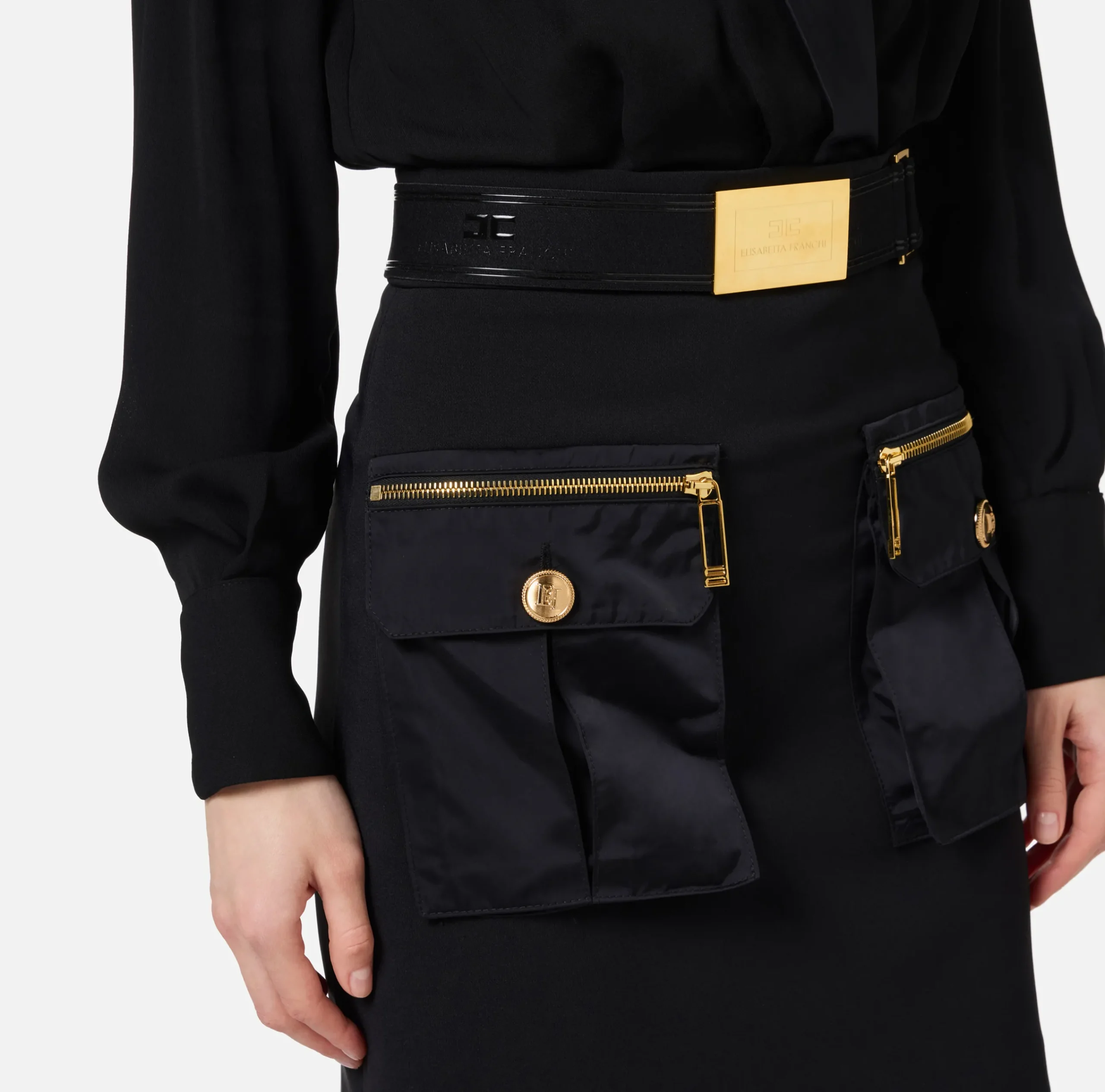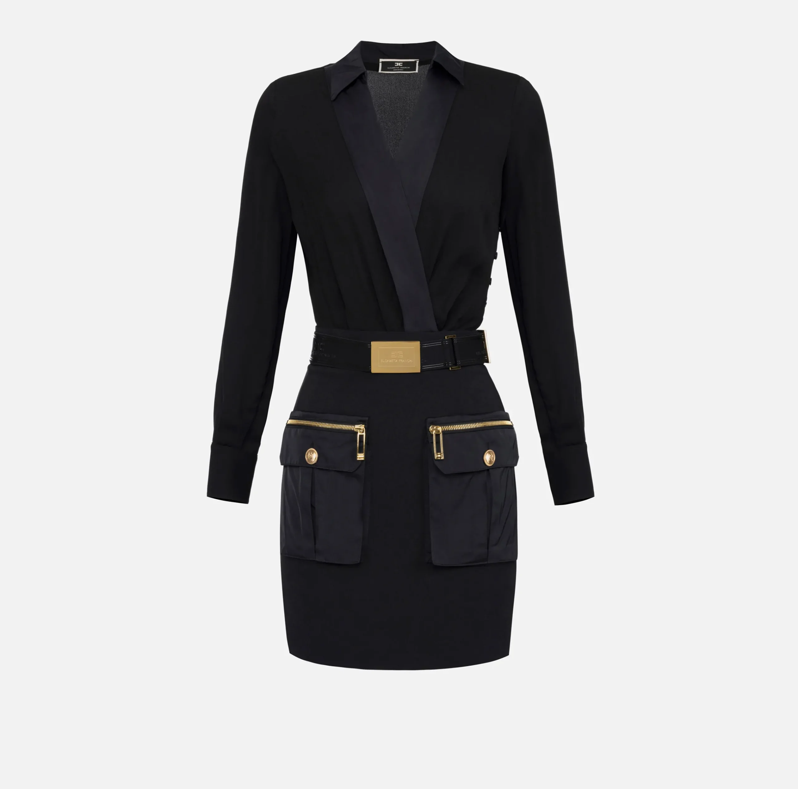 Be the first to review “Mini Abiti|Abiti|Elisabetta Franchi Miniabito con camicia incrociata e gonna con tasche Nero” Annulla risposta