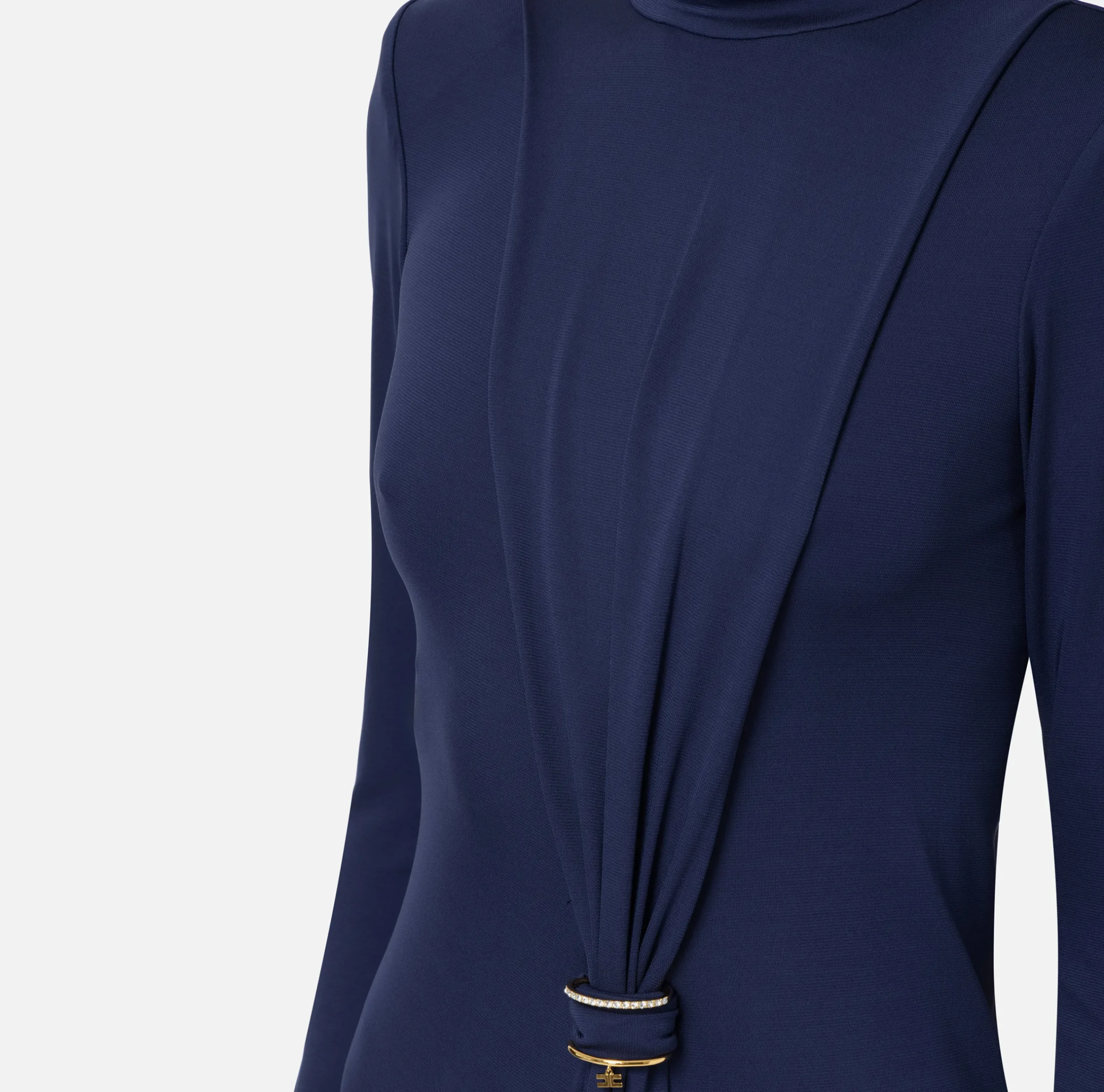 Mini Abiti|Abiti|Elisabetta Franchi Miniabito in jersey con drappeggio e accessorio gioiello Navy