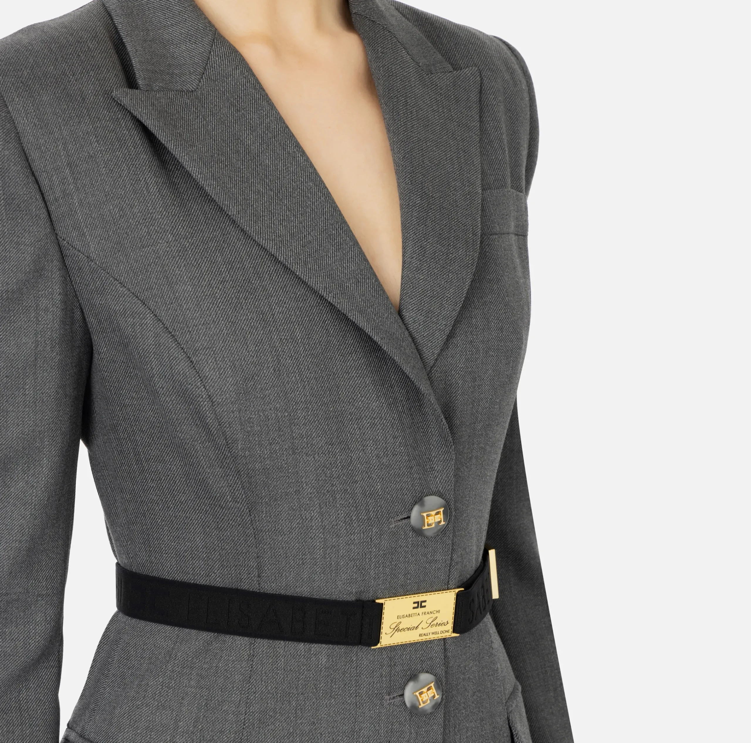 Mini Abiti|Robes Manteaux|Elisabetta Franchi Robe-manteau in fresco lana con cintura SteelMelange