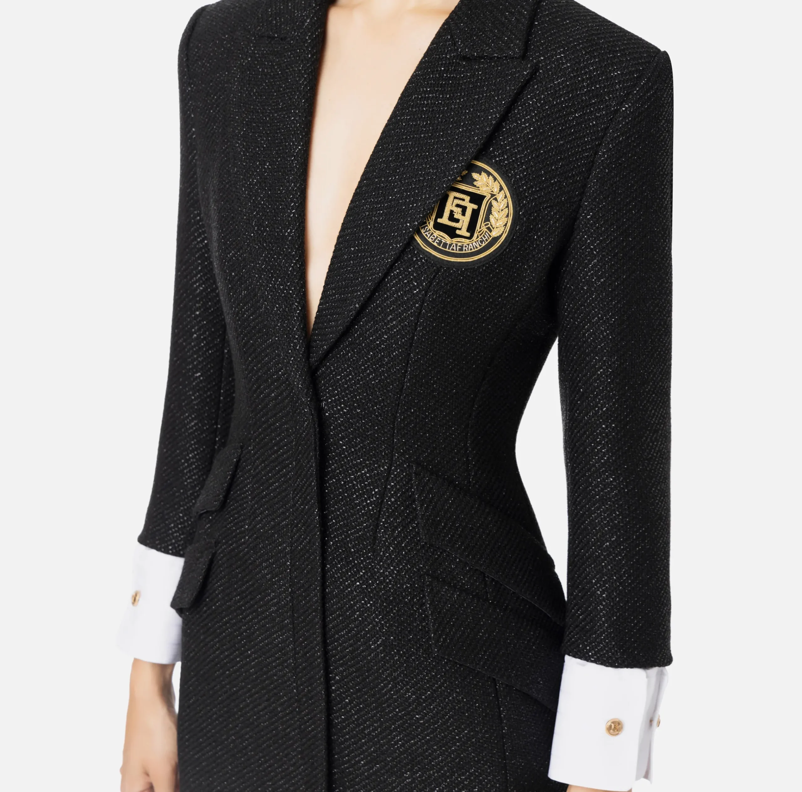 Mini Abiti|Robes Manteaux|Elisabetta Franchi Robe manteau in tweed laminato con patch logo Nero