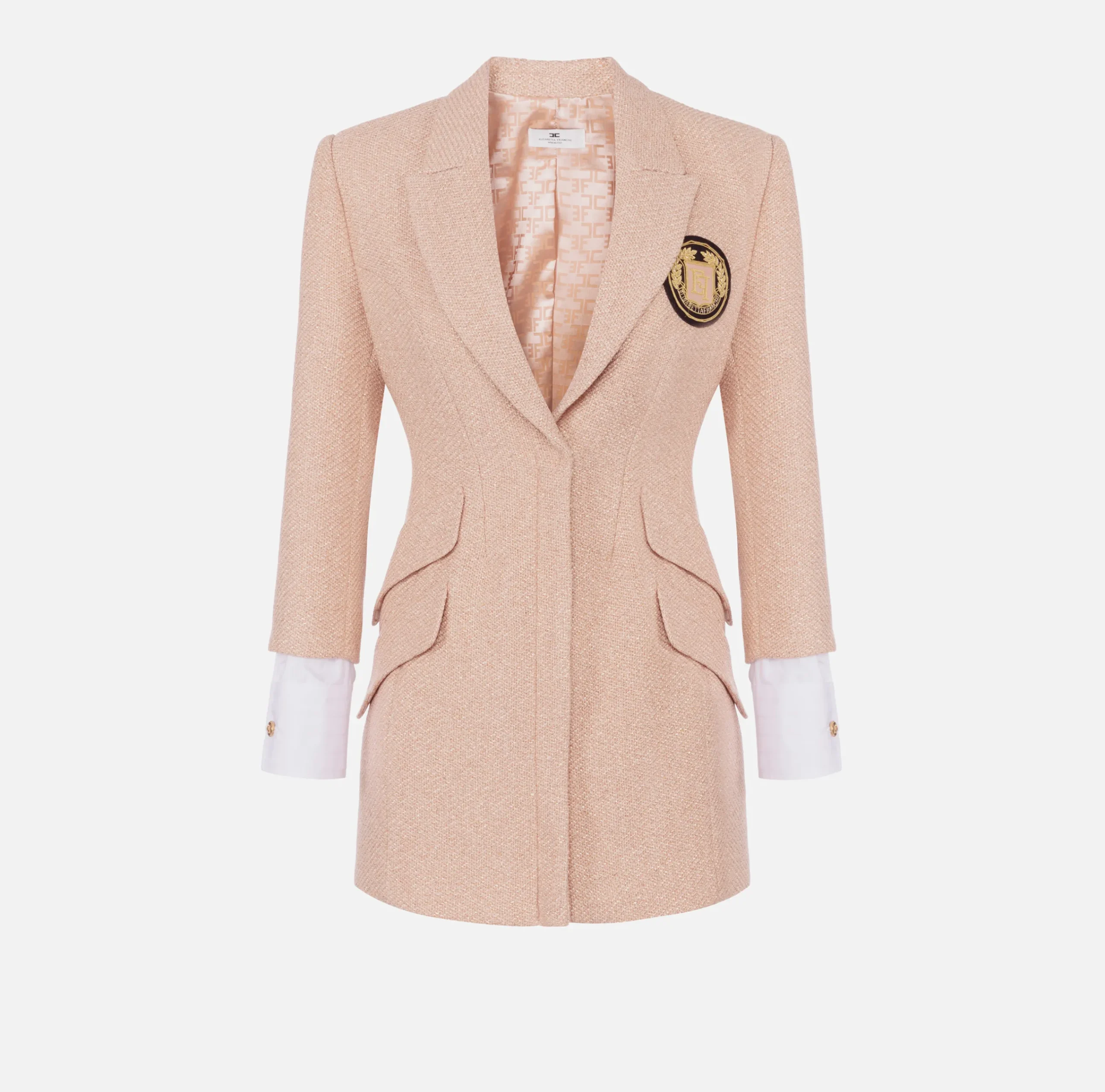 Mini Abiti|Robes Manteaux|Elisabetta Franchi Robe manteau in tweed laminato con patch logo PeachRose