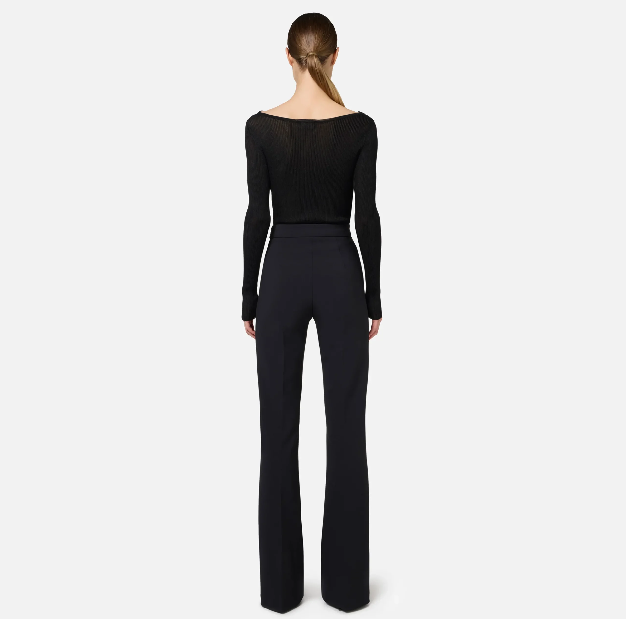 Pantaloni E Shorts|Elisabetta Franchi Pantalone a palazzo in crêpe stretch con cintura Nero