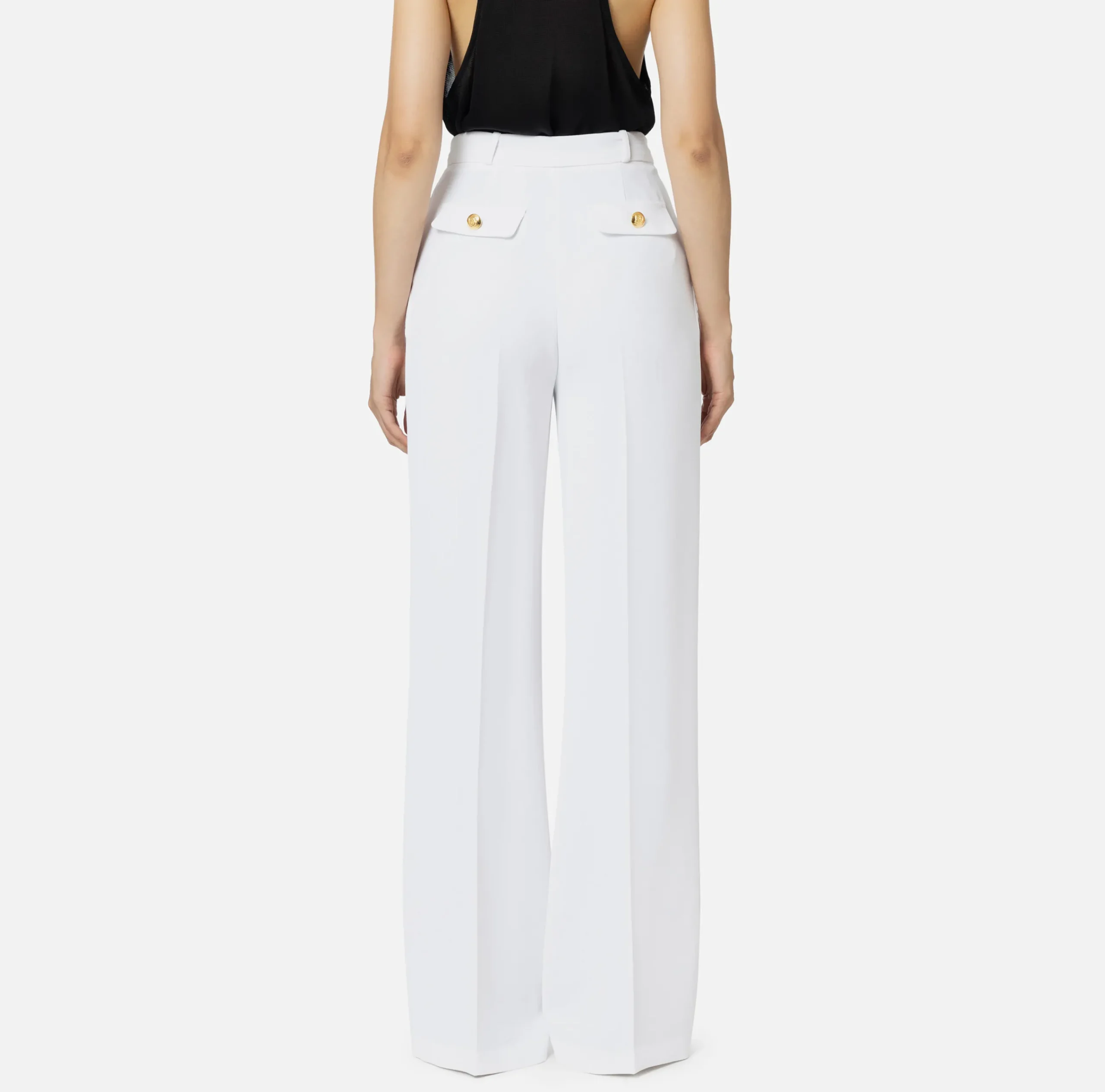 Pantaloni E Shorts|Elisabetta Franchi Pantalone dritto in crêpe fermo con rivetto stemma Avorio