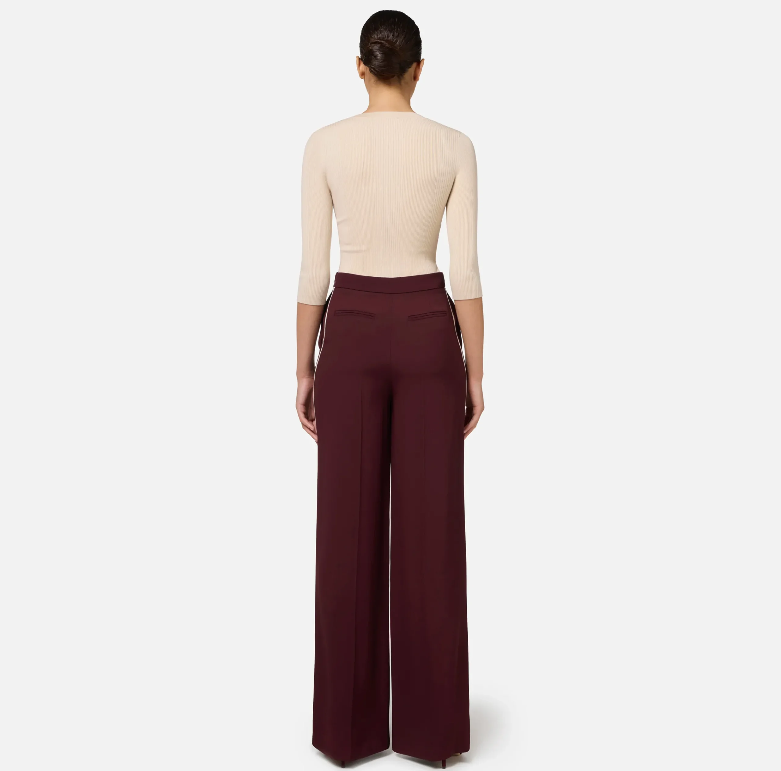 Pantaloni E Shorts|Elisabetta Franchi Pantalone palazzo in satin con morsetto RougeNoir/Burro