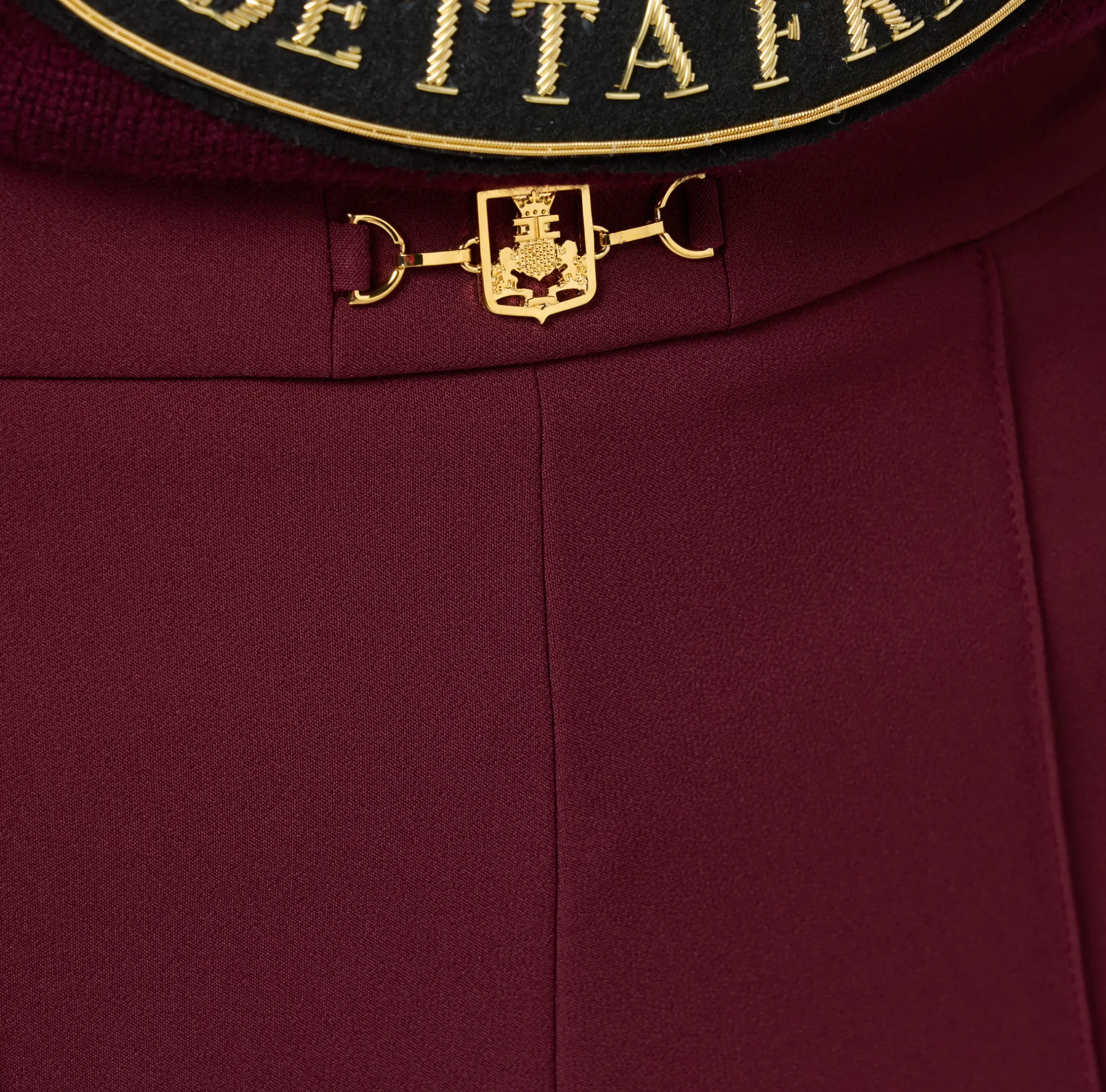 Short con vita alta in doppio crêpe stretch. È caratterizzato da fascione con morsetto logo in metallo dorato.