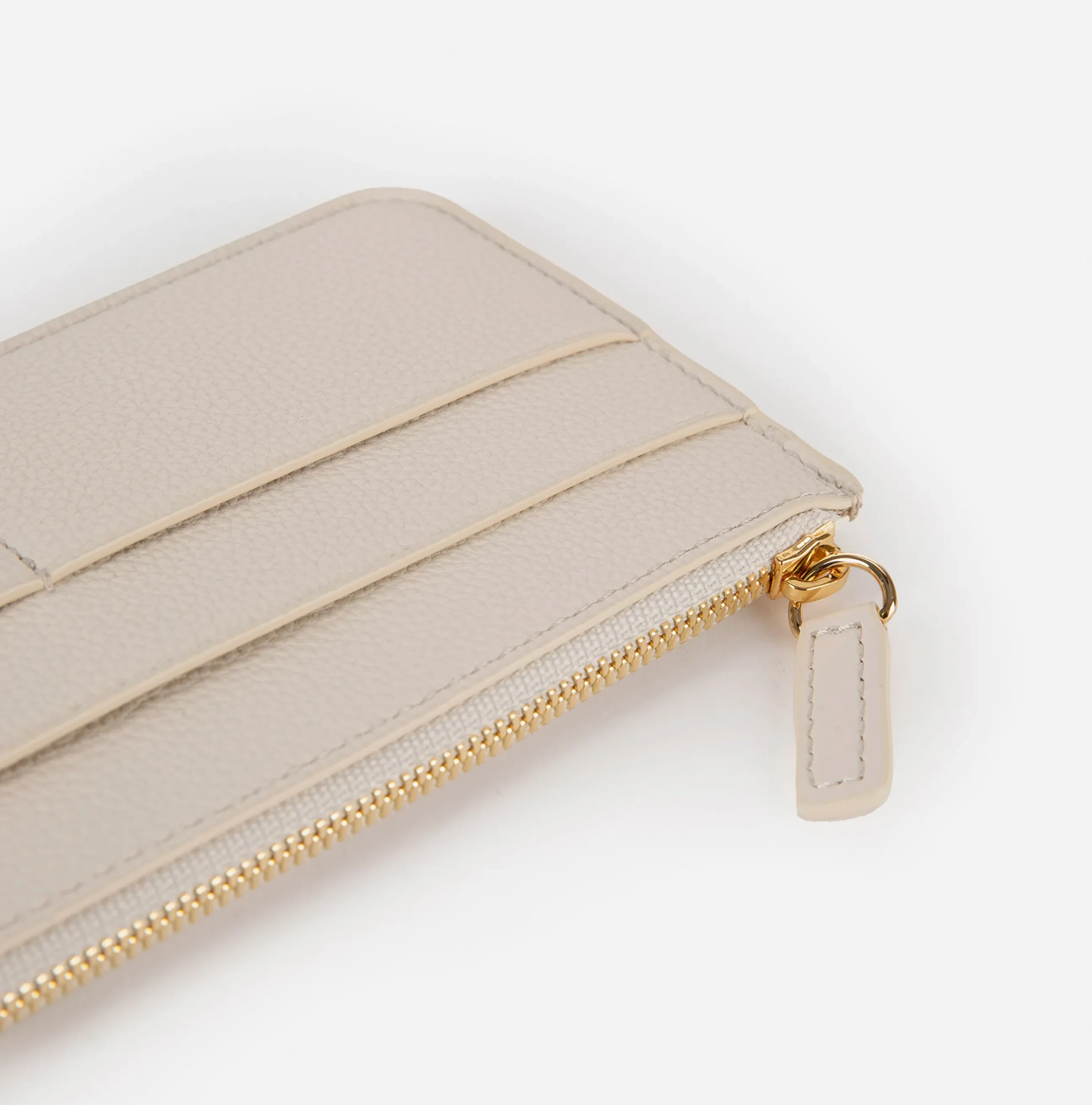 Nuovo porta carte, pratico ed essenziale, composto da tre scomparti per carte di credito e biglietti da visita e un comodo scomparto con zip e logo.