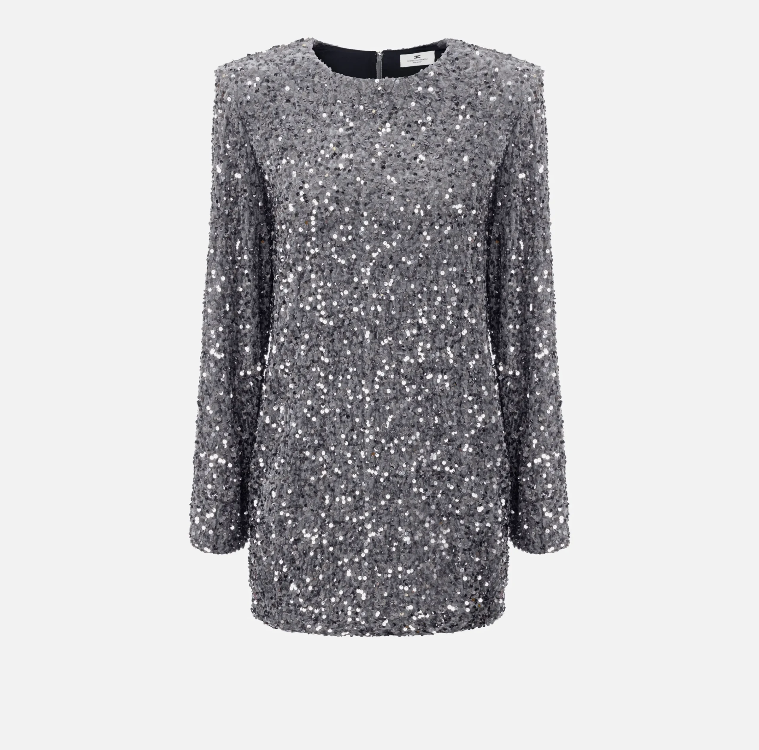 Red Carpet|Abiti Red Carpet|Elisabetta Franchi Miniabito boxy in ciniglia ricamata con pailettes Steel