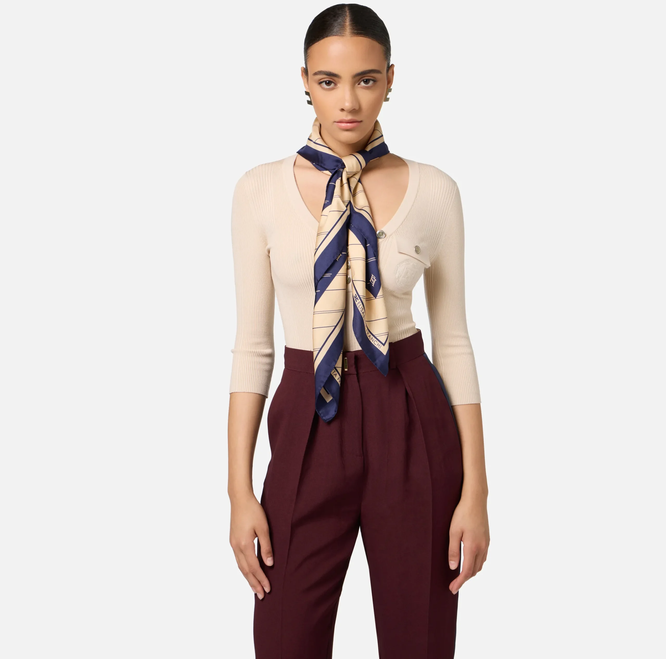 Be the first to review “Sciarpe|Elisabetta Franchi Foulard in seta con pattern righe diagonali e logo Navy/Crema” Annulla risposta
