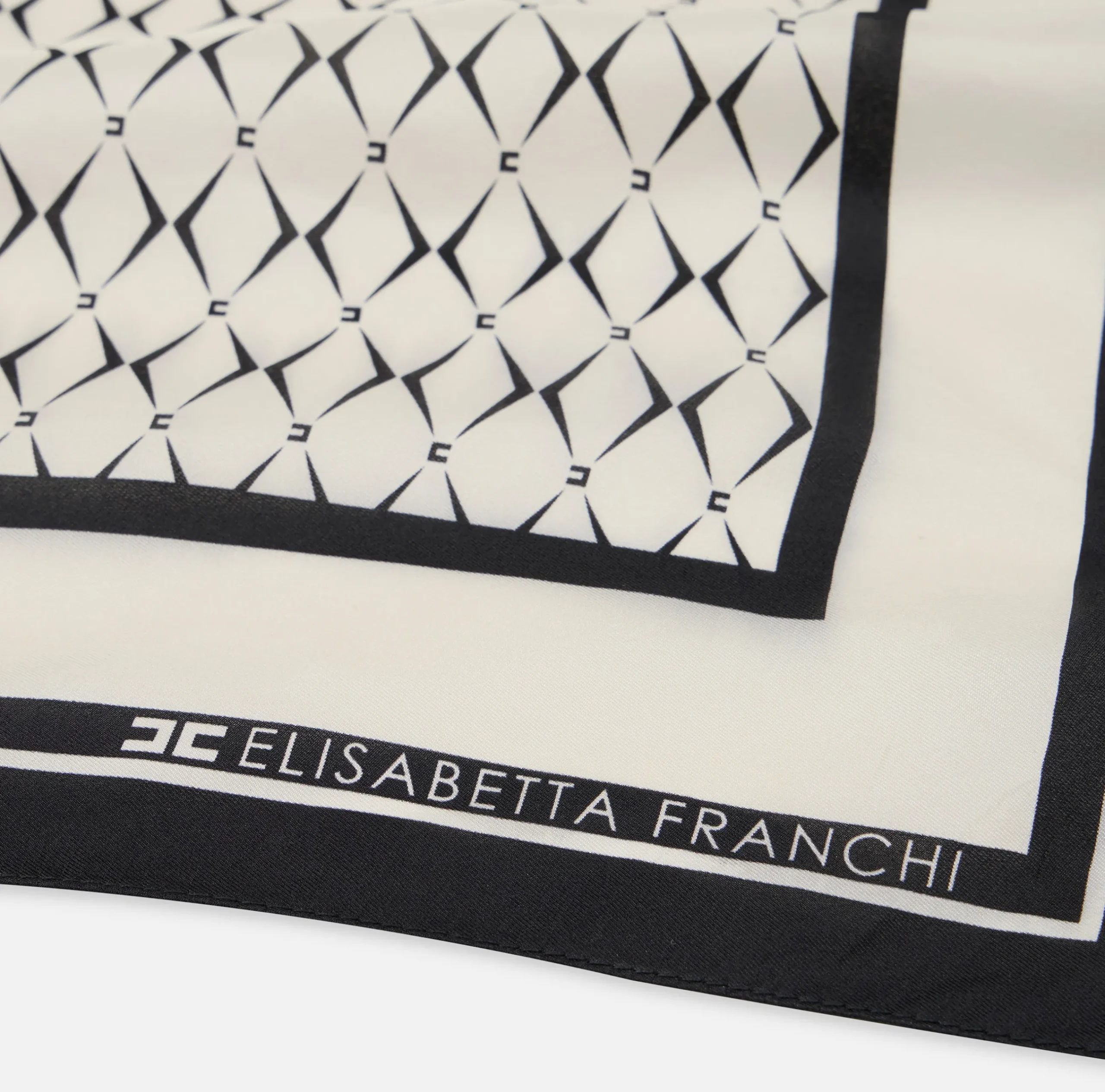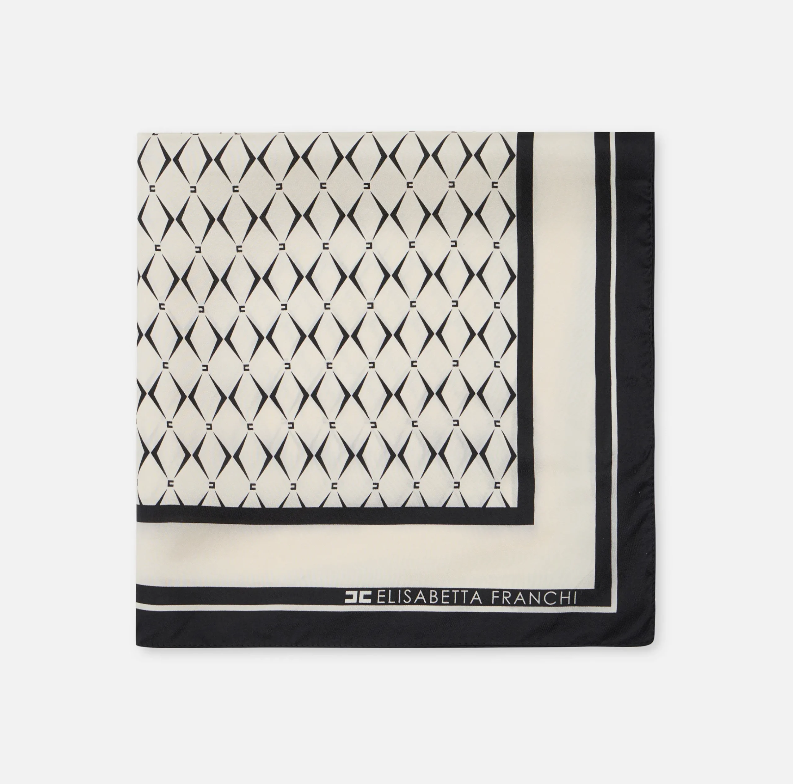 Sciarpe|Elisabetta Franchi Foulard in seta con pattern rombo e logo Burro/Nero