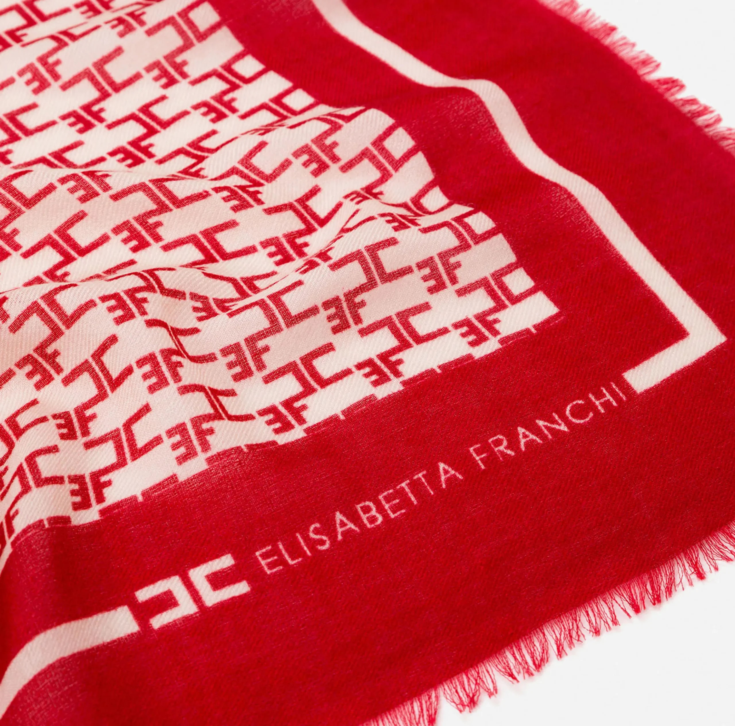 Sciarpe|Elisabetta Franchi Sciarpa Monogram Burro/Rosso