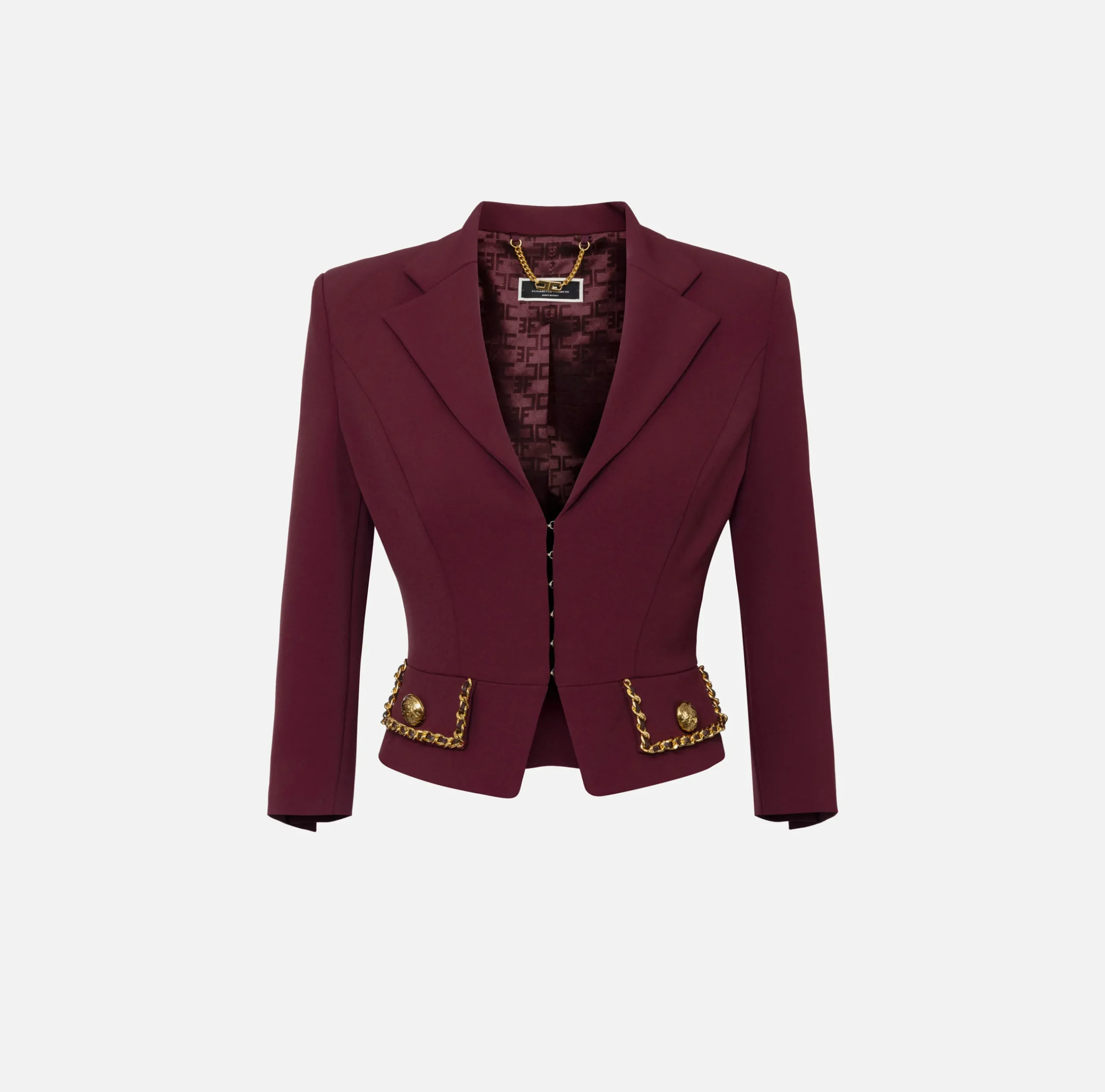 Tailleur|Giacche & Trench|Elisabetta Franchi Giacca cropped in crêpe stretch con catena RougeNoir