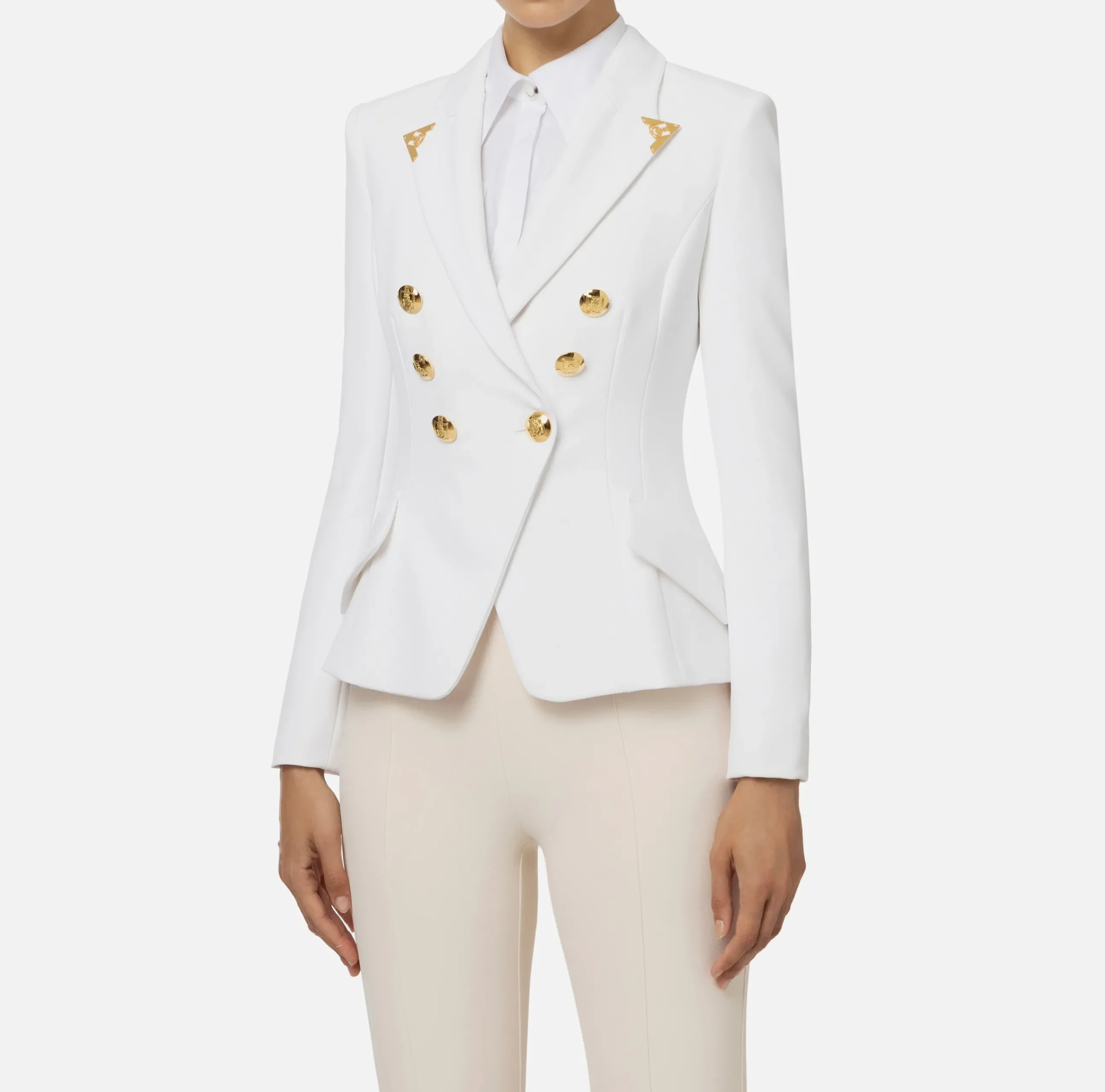 Tailleur|Giacche & Trench|Elisabetta Franchi Giacca doppiopetto in crêpe stretch con puntali Avorio