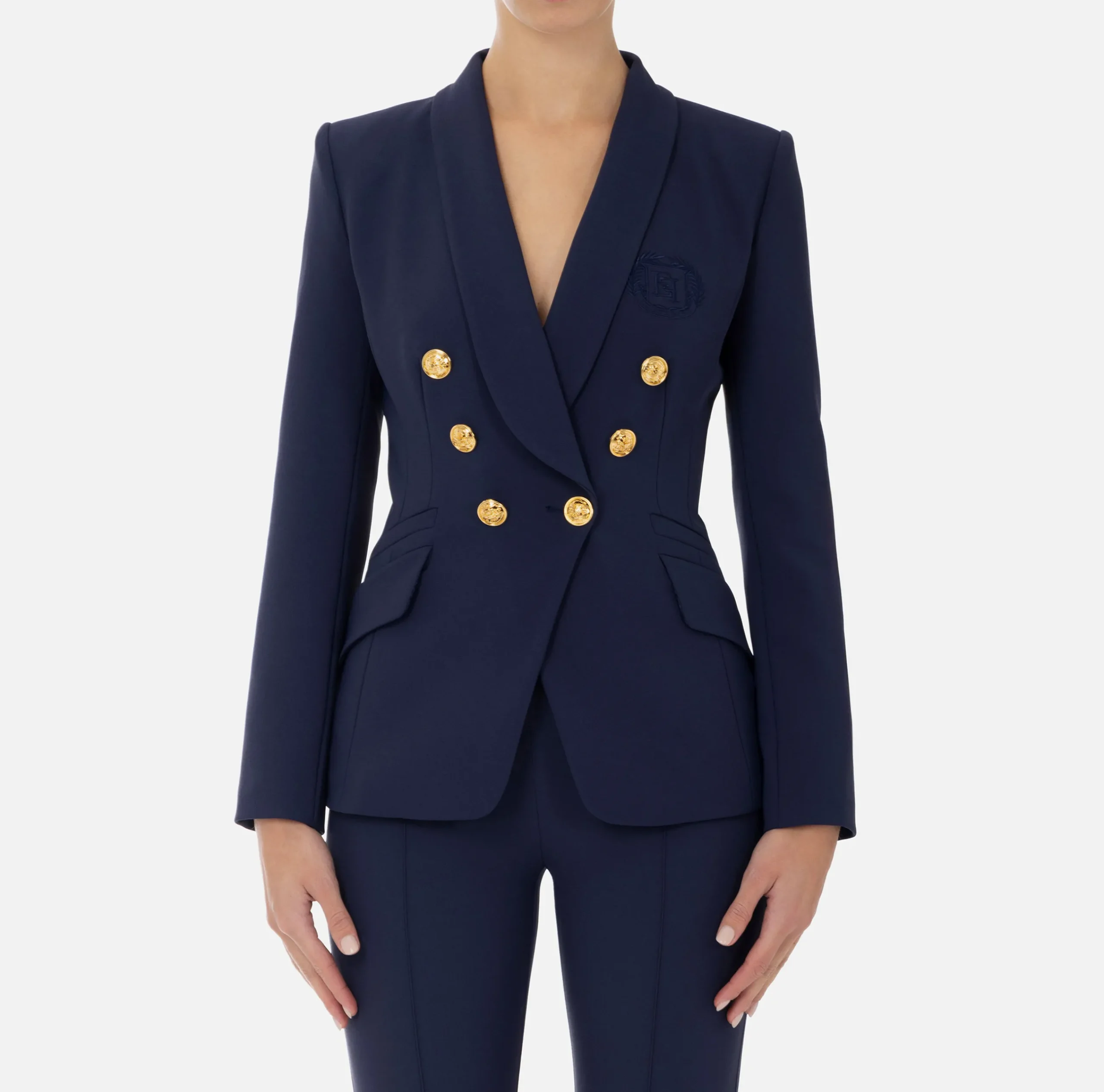 Tailleur|Giacche & Trench|Elisabetta Franchi Giacca doppiopetto in crêpe stretch con ricamo Navy