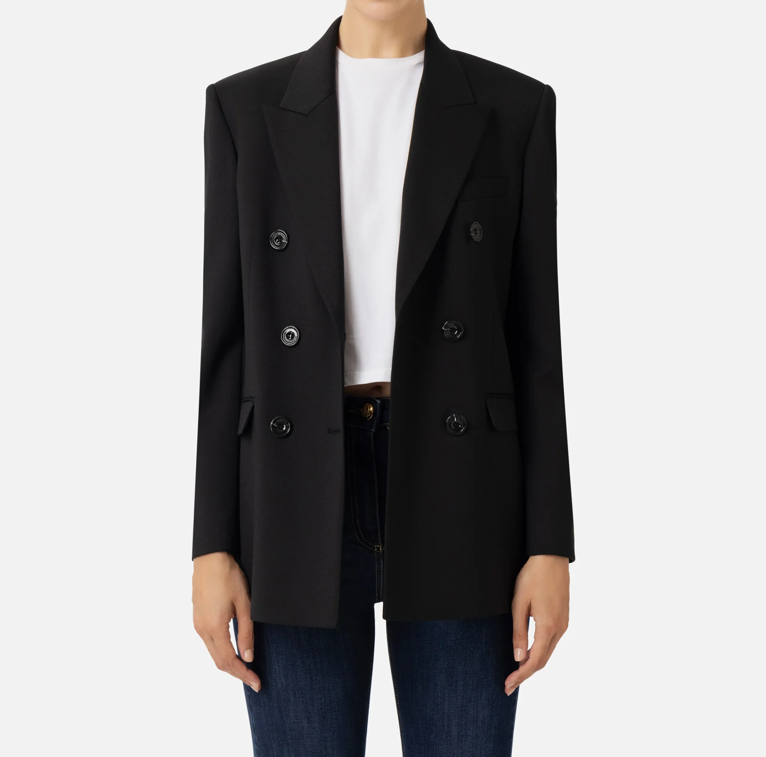 Tailleur|Giacche & Trench|Elisabetta Franchi Giacca doppiopetto in fresco di lana Nero