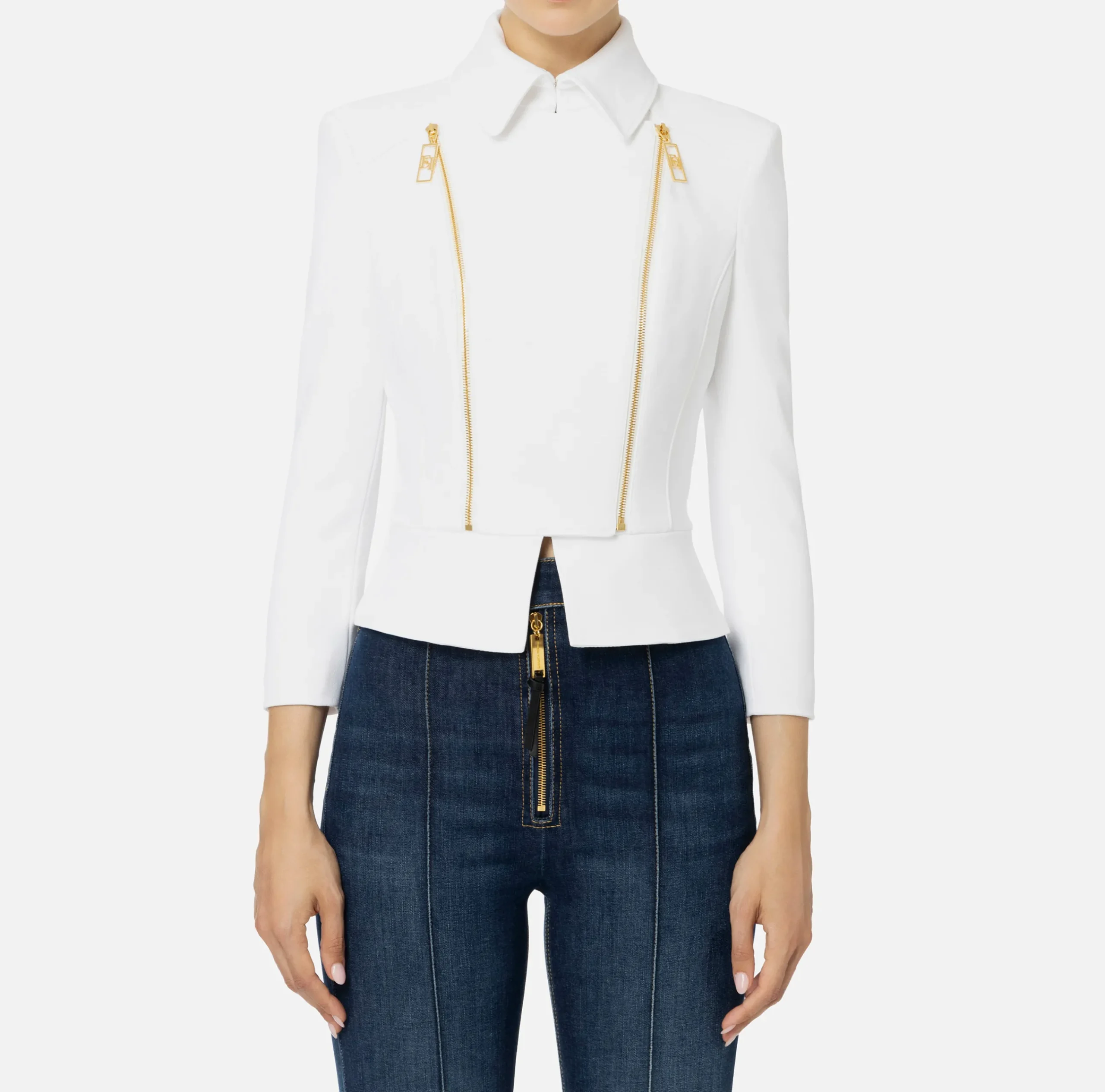 Tailleur|Giacche & Trench|Elisabetta Franchi Giacca in crêpe stretch con baschina e zip Avorio
