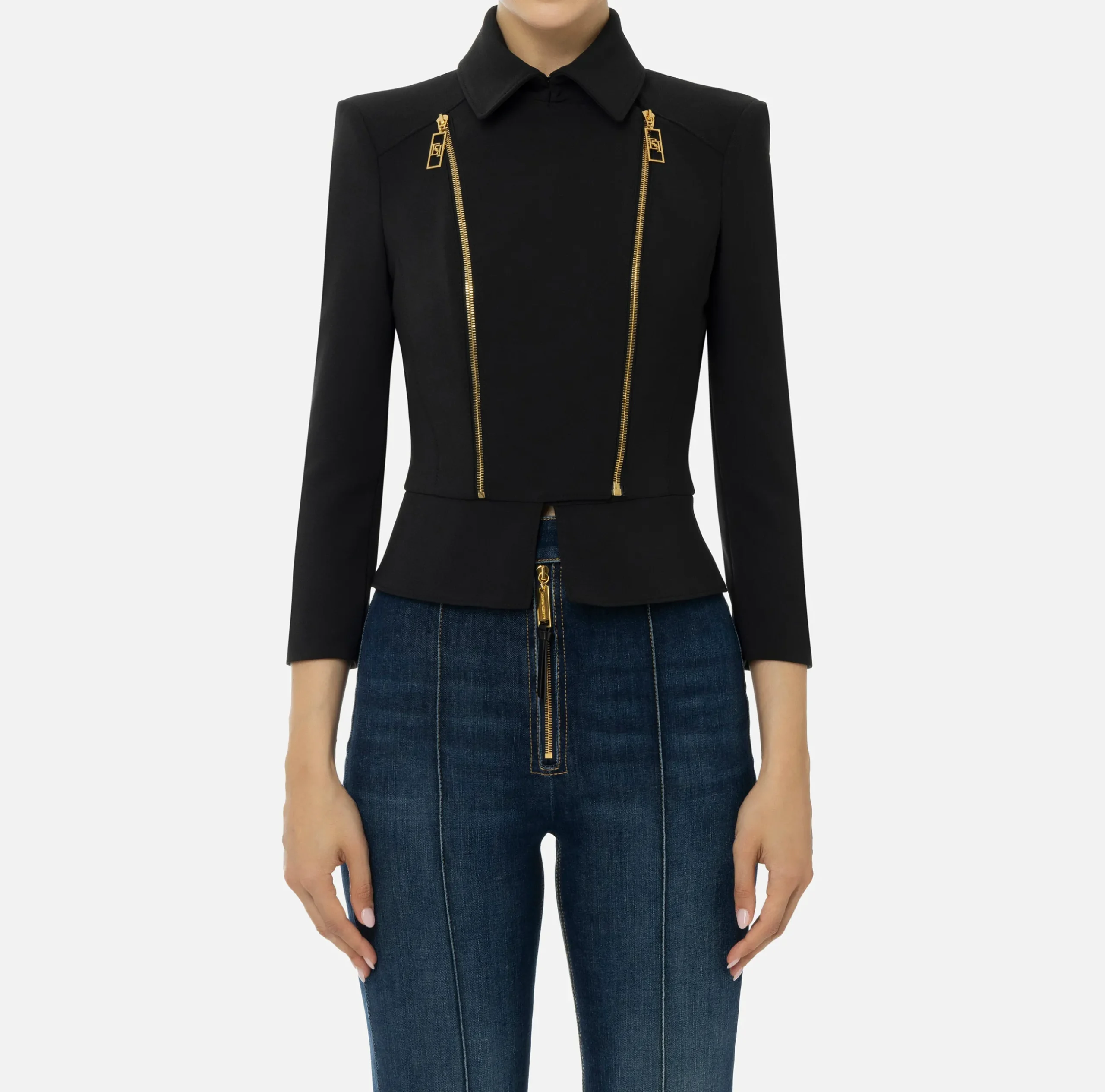 Tailleur|Giacche & Trench|Elisabetta Franchi Giacca in crêpe stretch con baschina e zip Nero