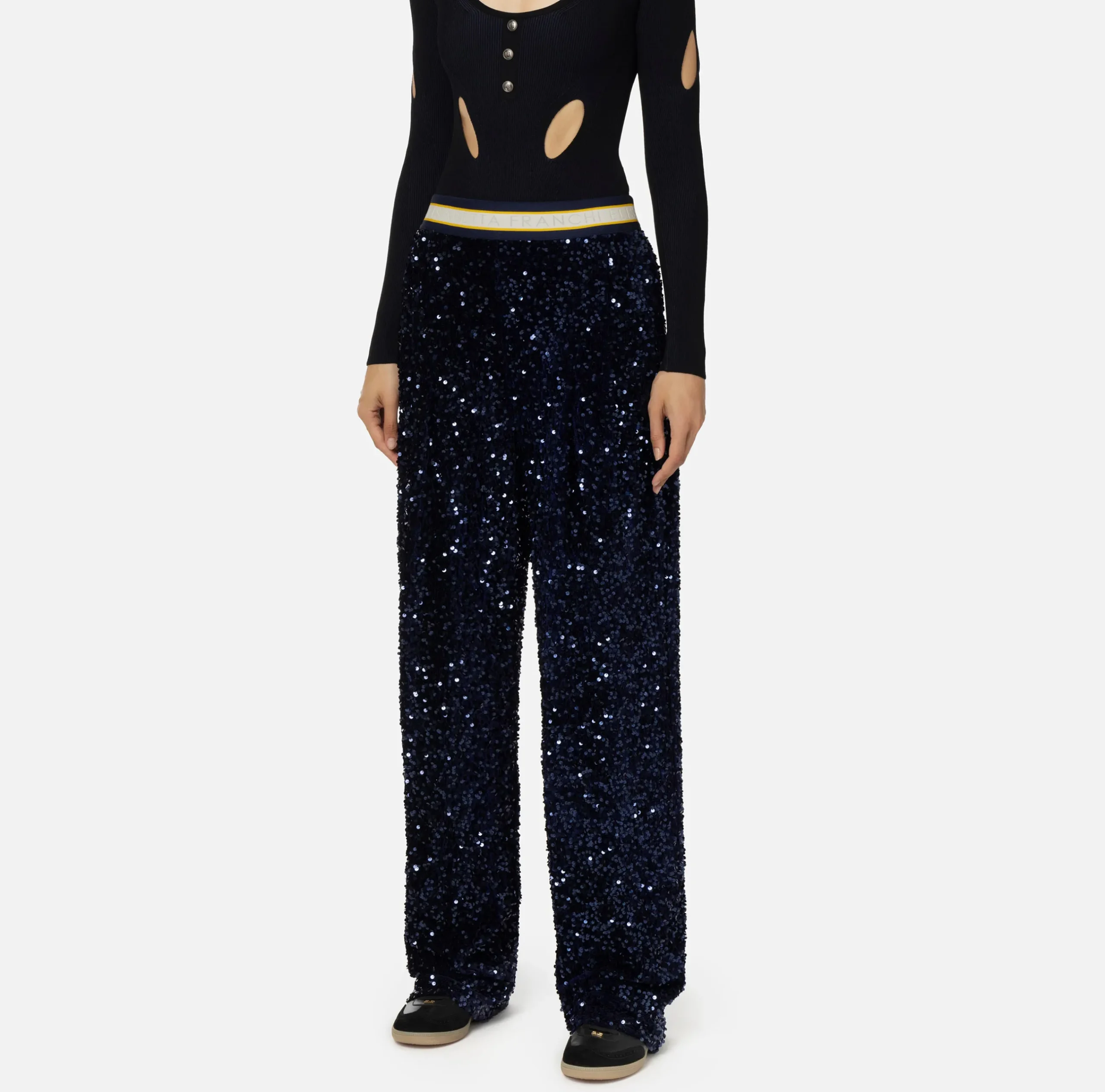 Tailleur|Pantaloni E Shorts|Elisabetta Franchi Pantalone in ciniglia ricamata con paillettes Navy