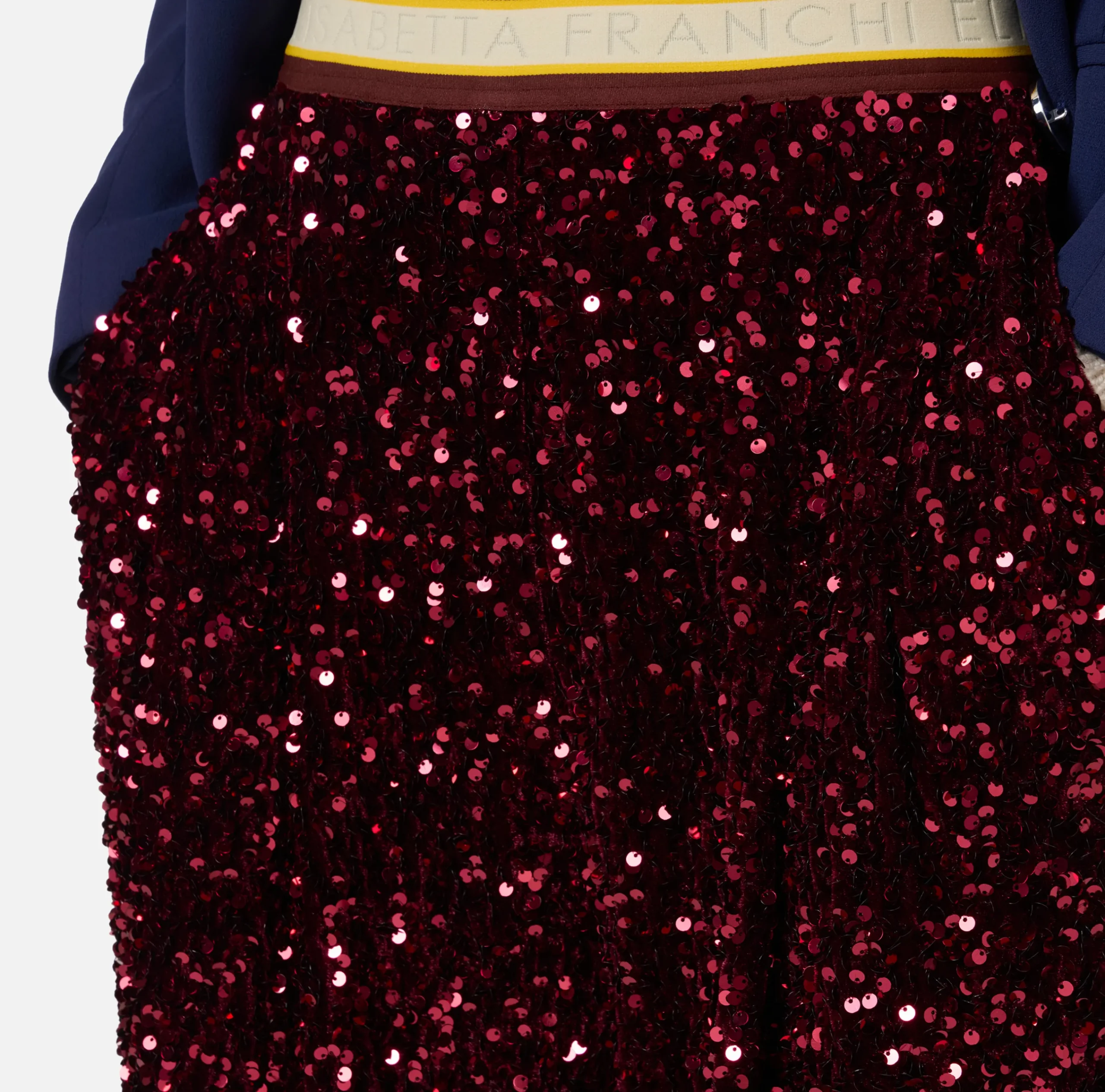 Tailleur|Pantaloni E Shorts|Elisabetta Franchi Pantalone in ciniglia ricamata con paillettes RougeNoir