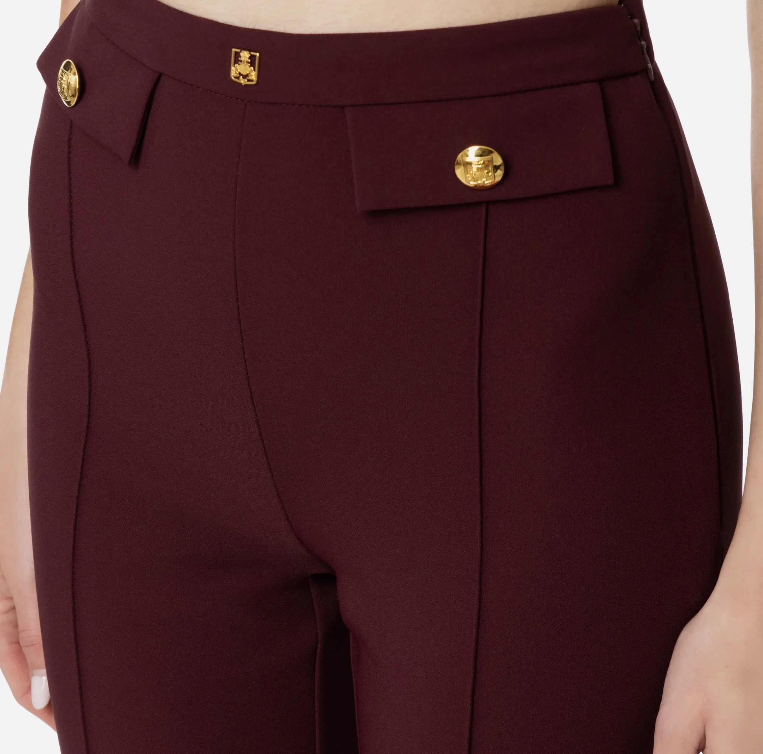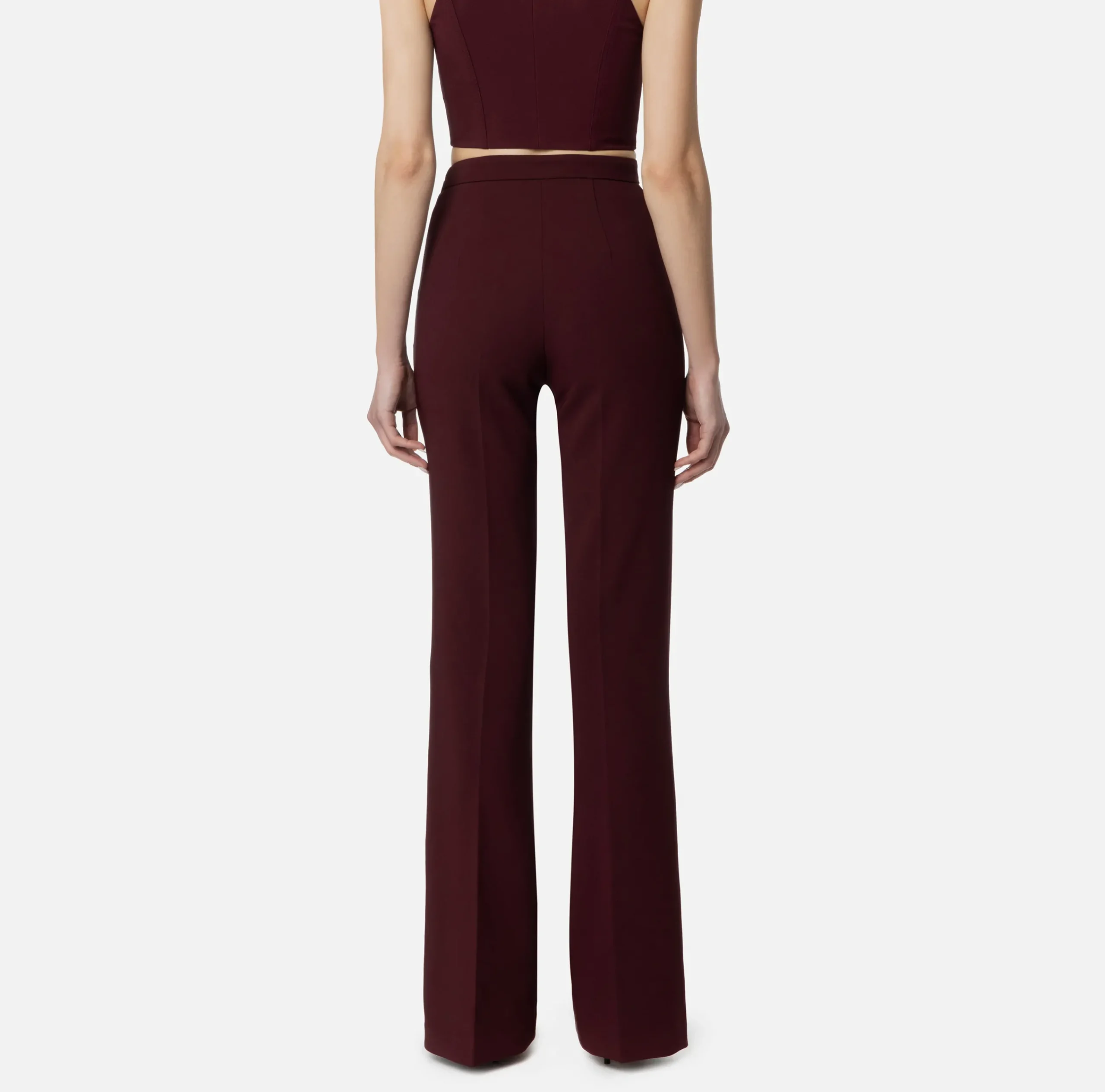 Tailleur|Pantaloni E Shorts|Elisabetta Franchi Pantalone palazzo in crêpe stretch con rivetto logo RougeNoir