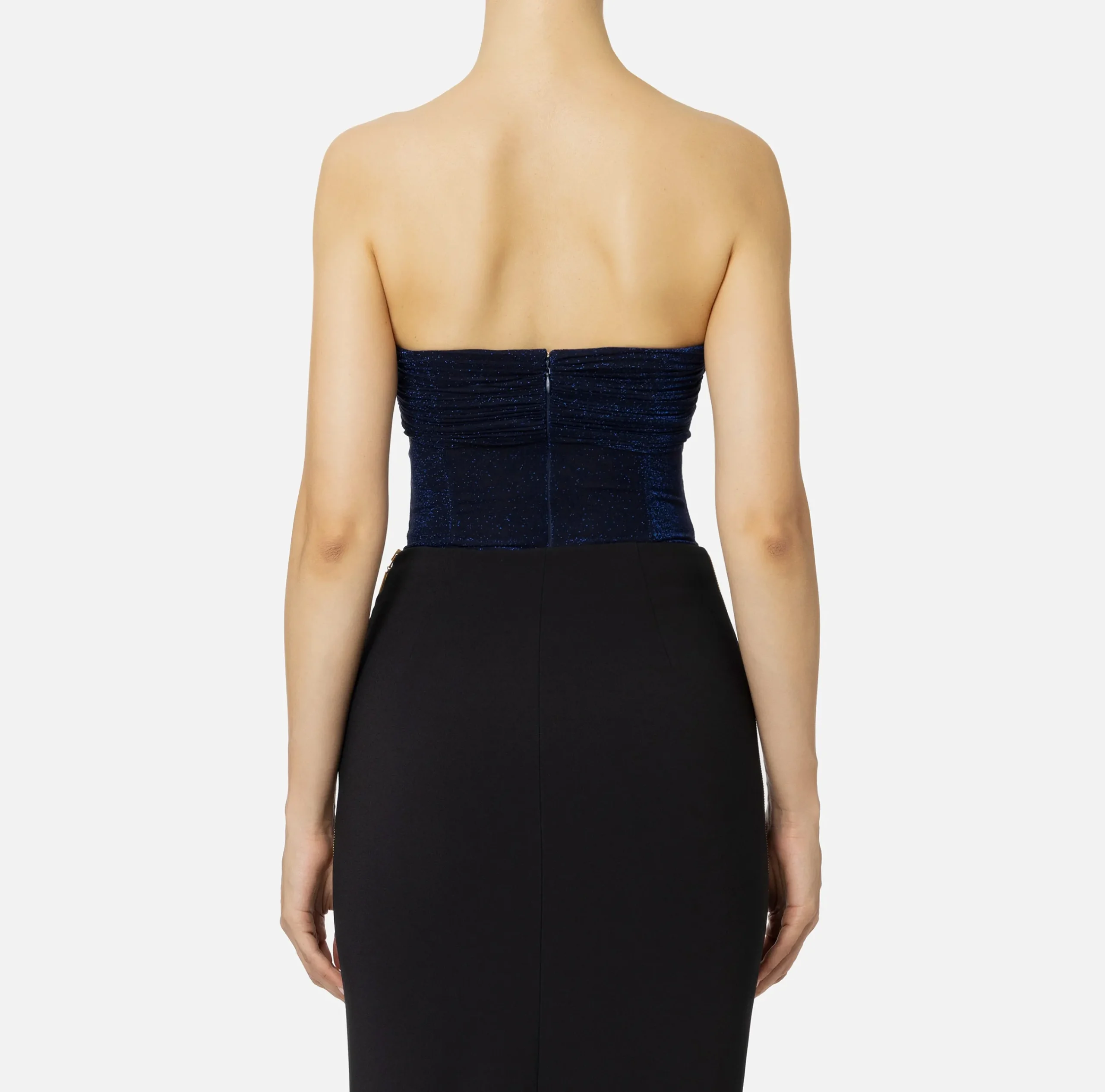Top, T-Shirt & Body|Elisabetta Franchi Body in jersey lurex plissettato Navy