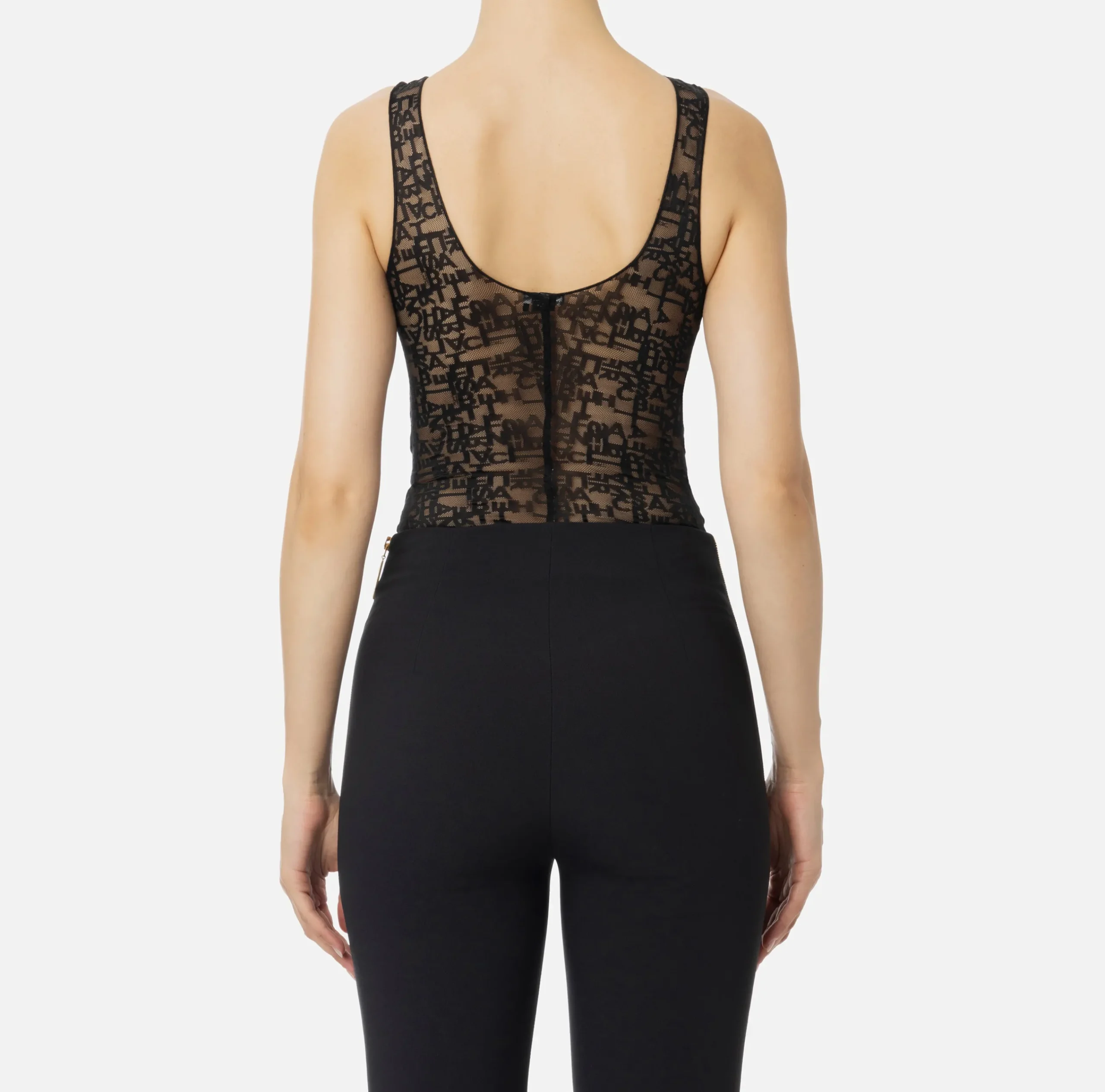Top, T-Shirt & Body|Elisabetta Franchi Body in tulle lettering Nero