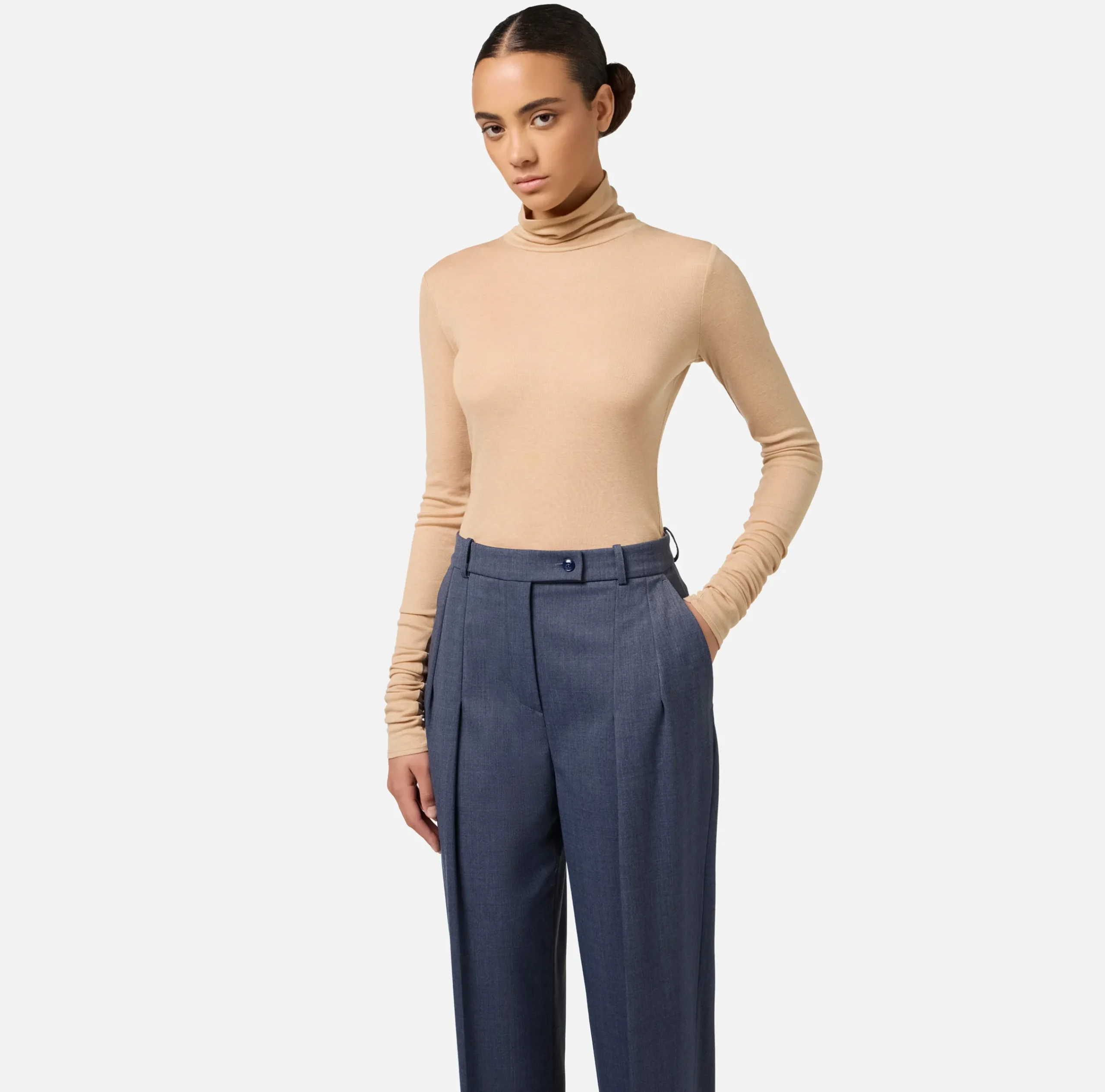 Top, T-Shirt & Body|Elisabetta Franchi Maglia dolcevita in jersey e lana con logo Avorio