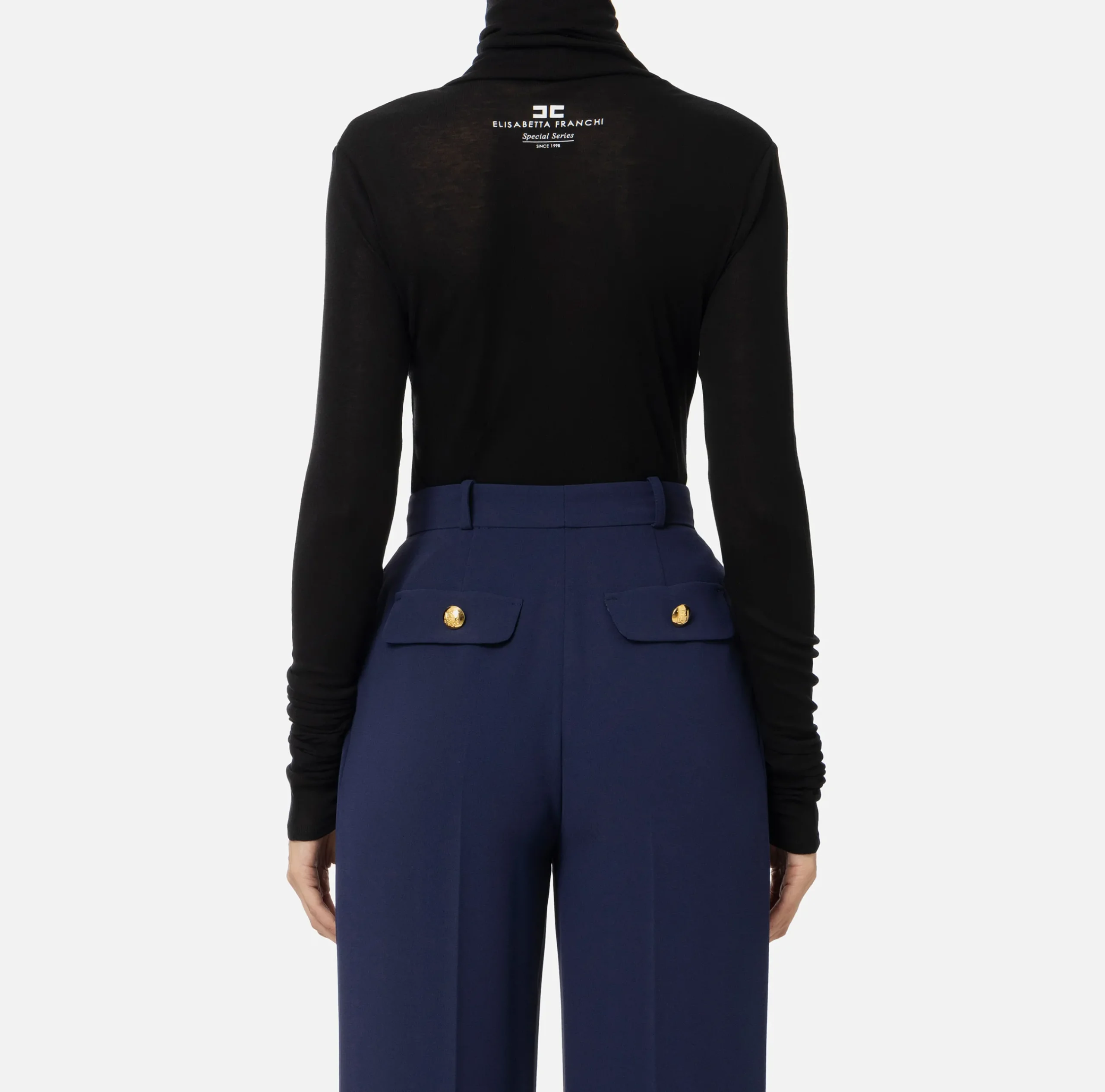 Top, T-Shirt & Body|Elisabetta Franchi Maglia dolcevita in jersey e lana con logo Nero