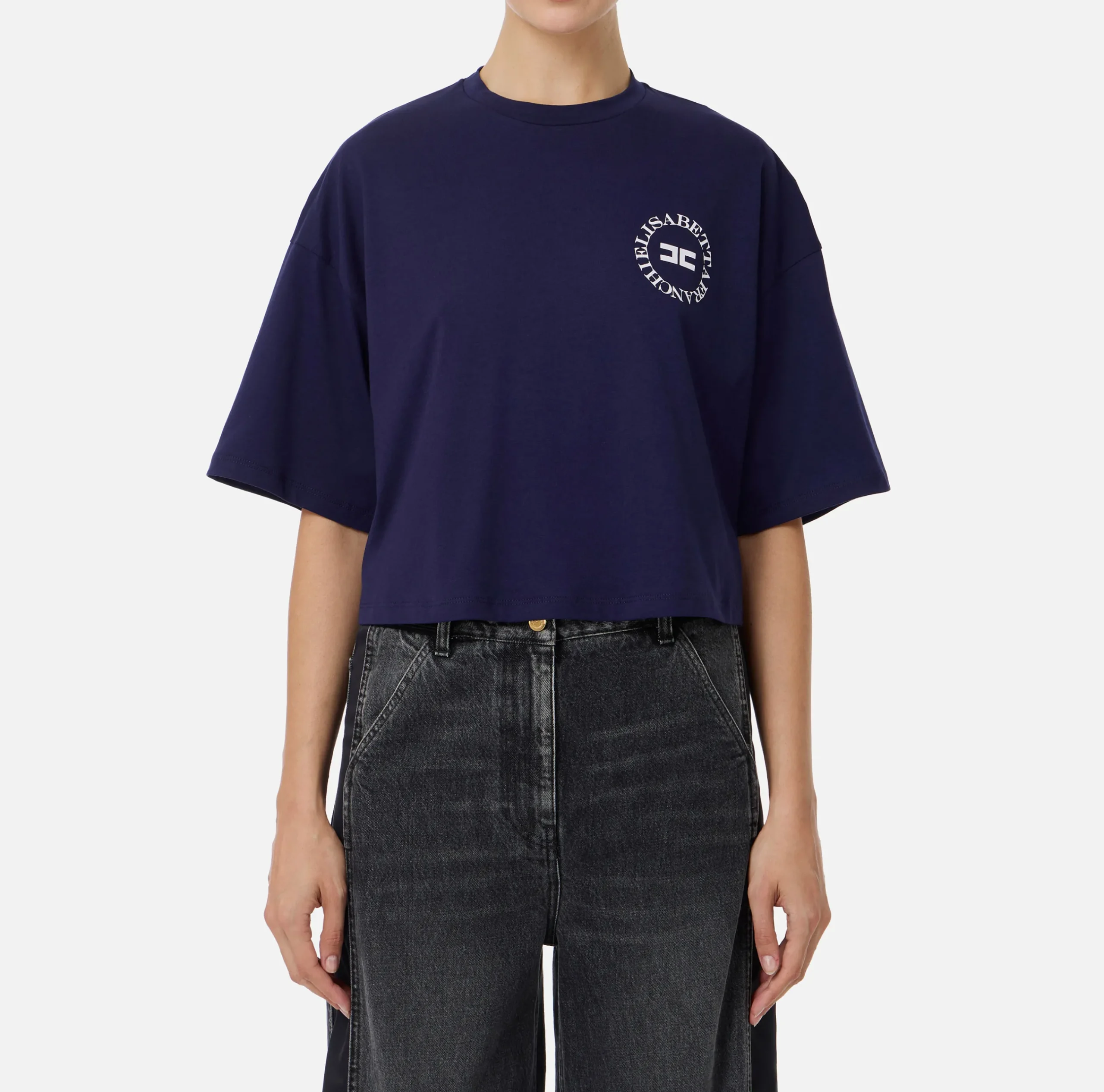 Top, T-Shirt & Body|Elisabetta Franchi T-shirt cropped in jersey con logo Navy
