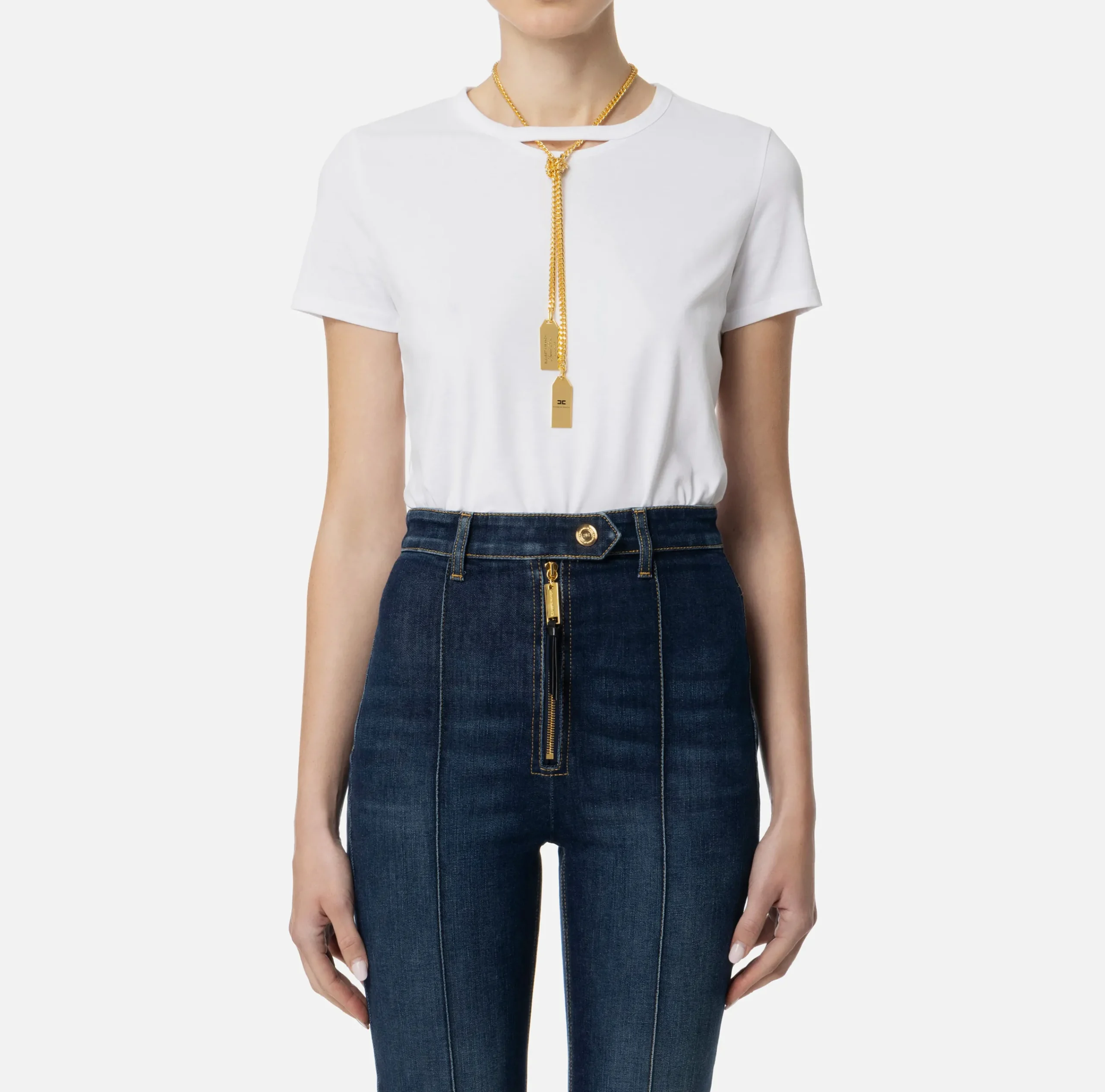 Top, T-Shirt & Body|Elisabetta Franchi T-shirt in jersey con collana Gesso