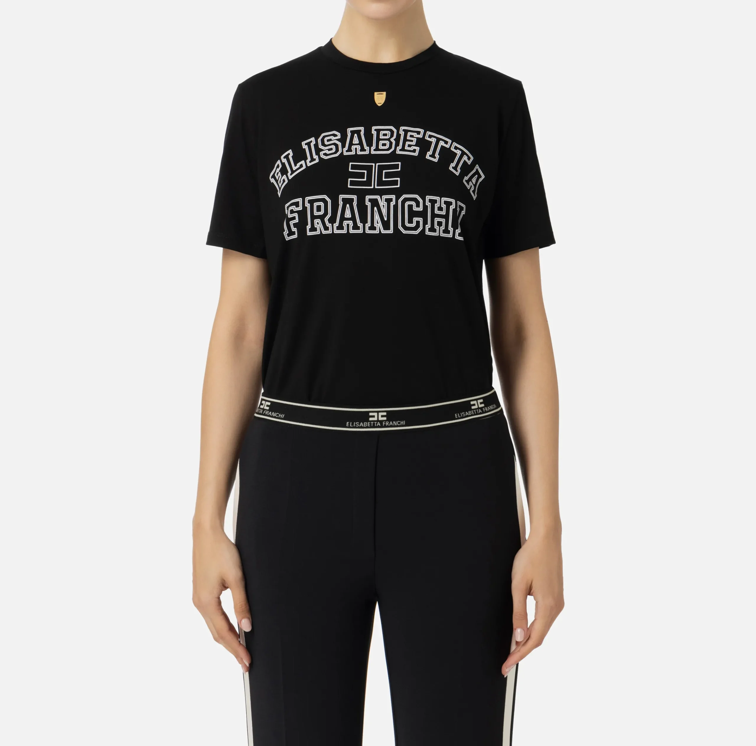 Top, T-Shirt & Body|Elisabetta Franchi T-shirt in jersey con logo college Nero