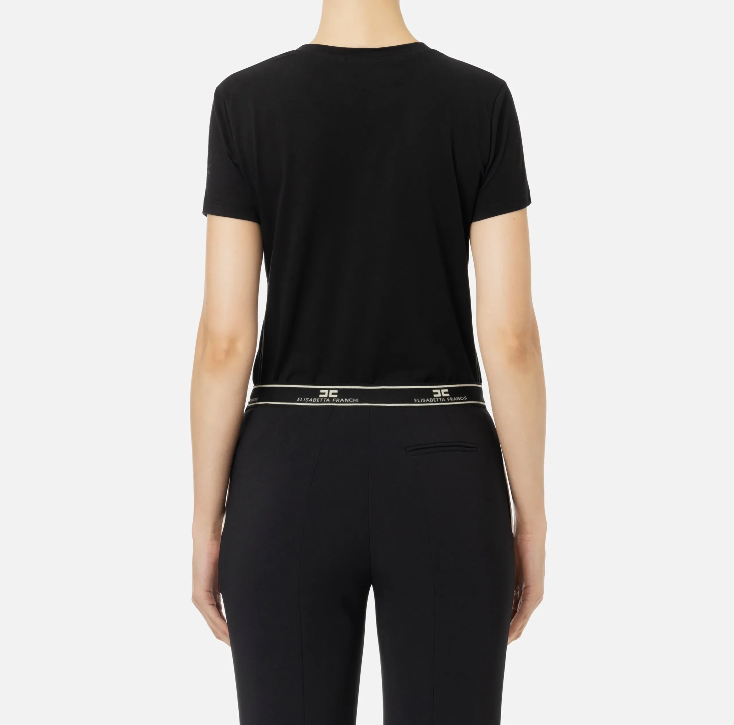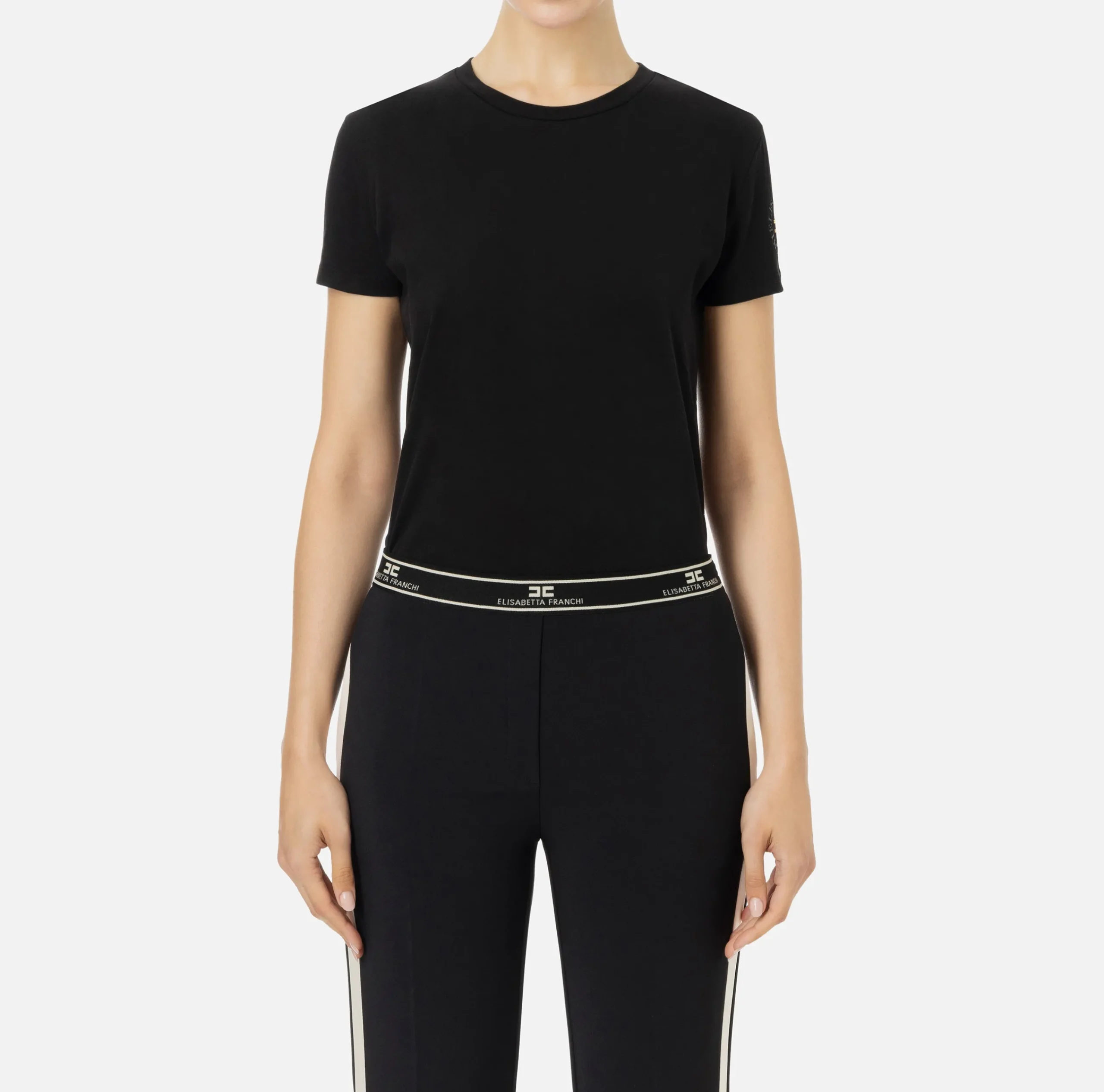 Top, T-Shirt & Body|Elisabetta Franchi T-shirt in jersey con ricamo logo Nero