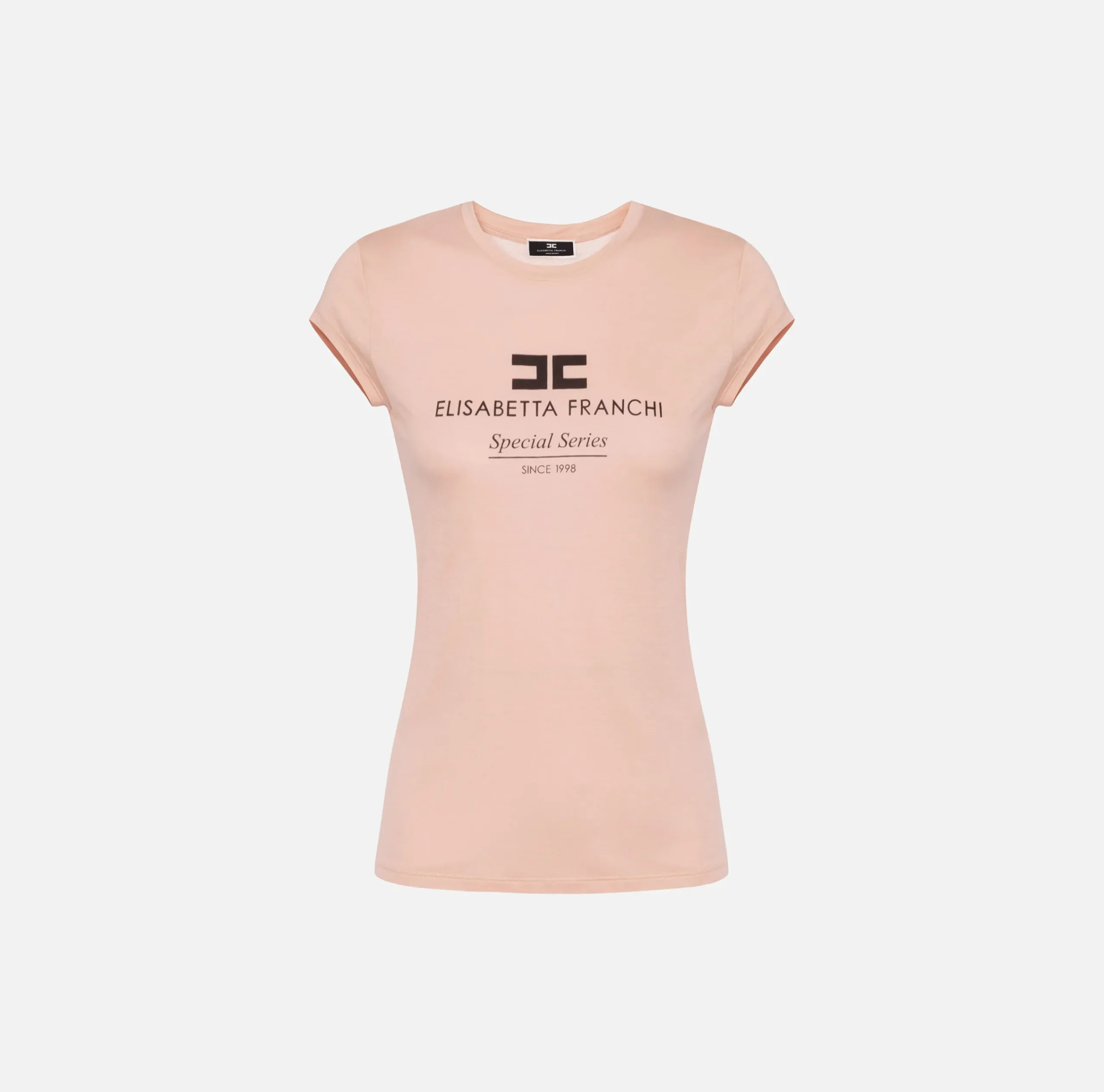 Top, T-Shirt & Body|Elisabetta Franchi T-shirt in jersey modal con stampa logo PeachRose