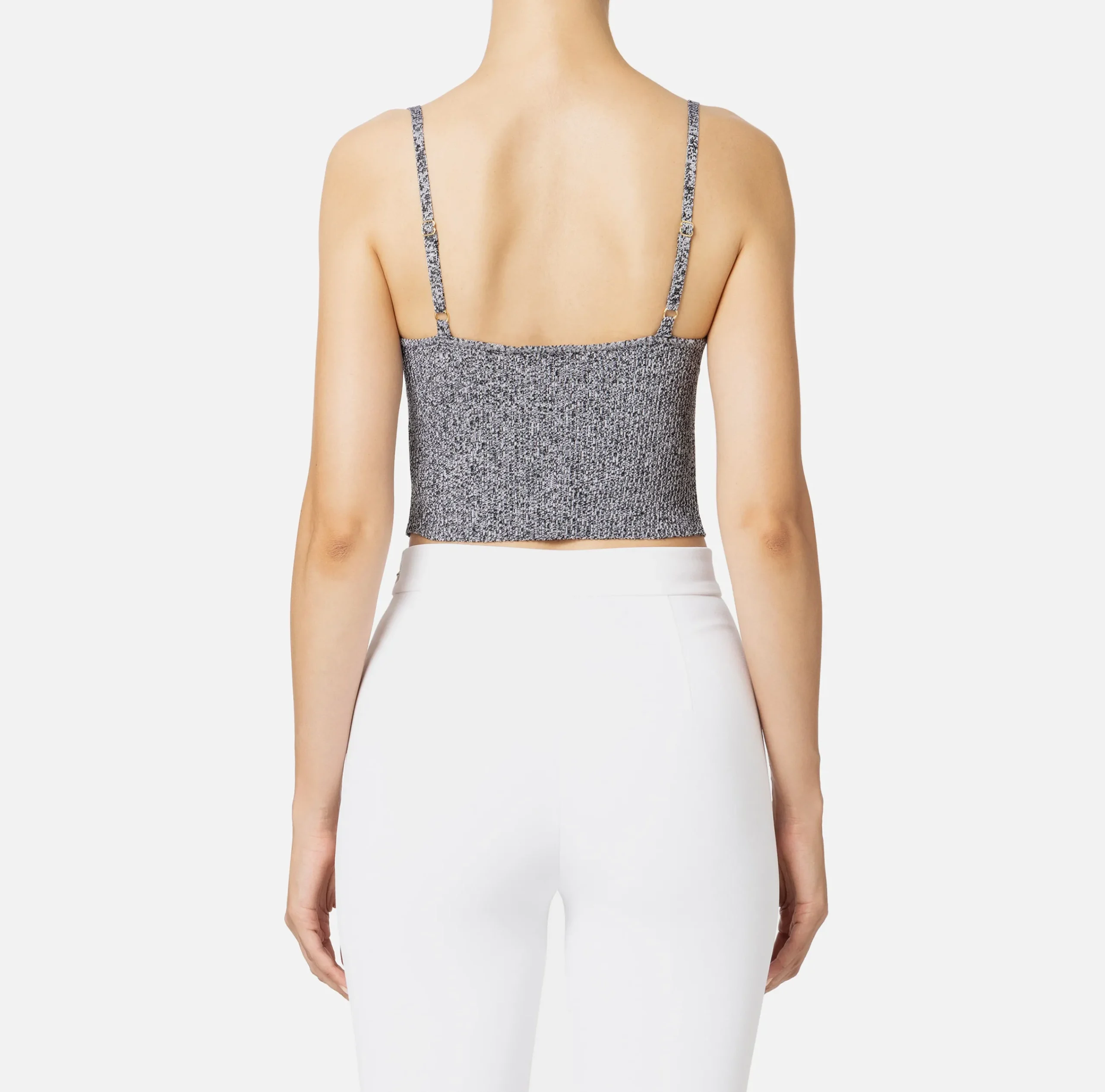 Top bustier in misto viscosa con spalline sottili e passanti logo in metallo dorato.