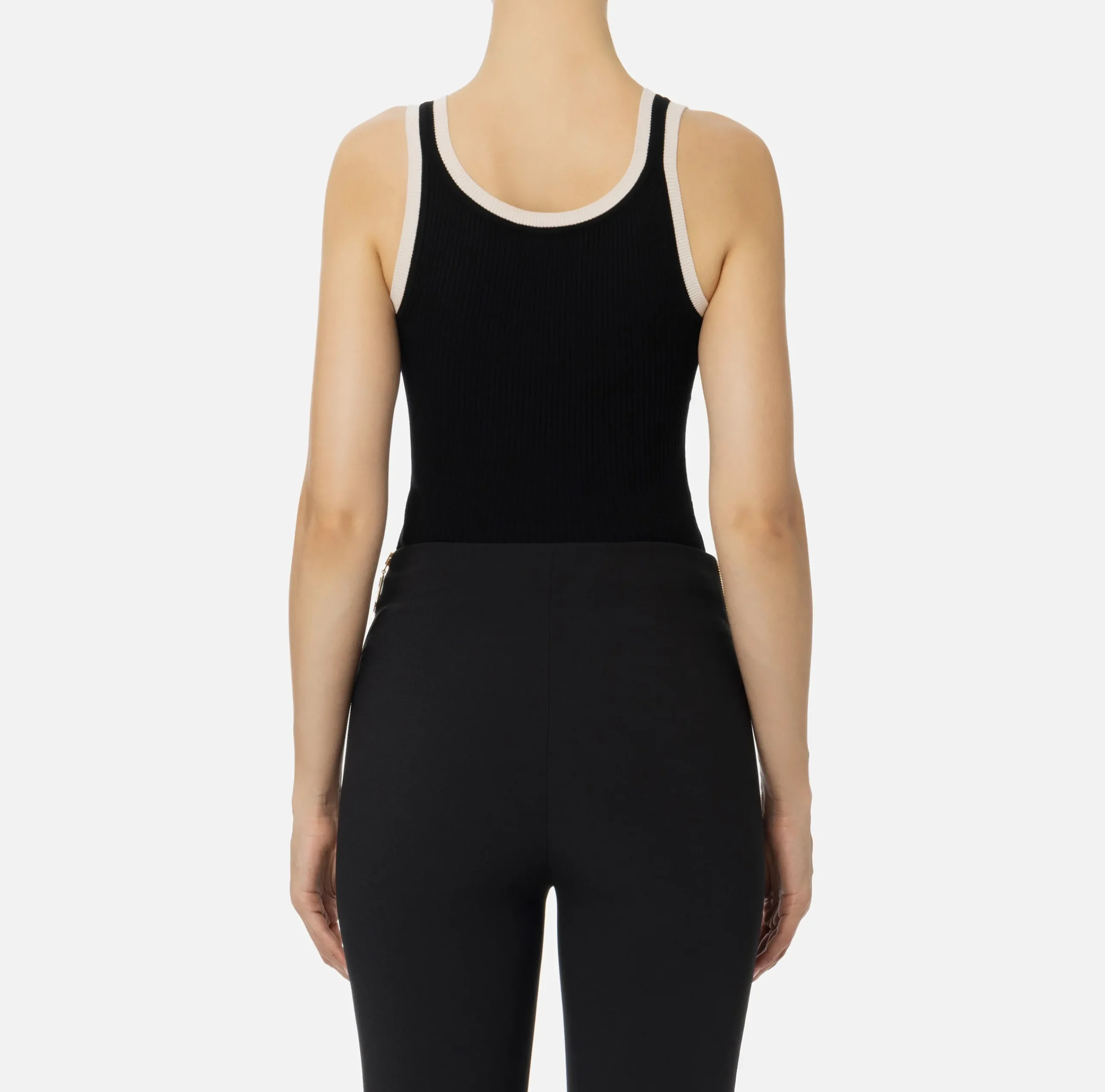 Top in misto viscosa a costine con profili e logo intarsiato in contrasto colore.