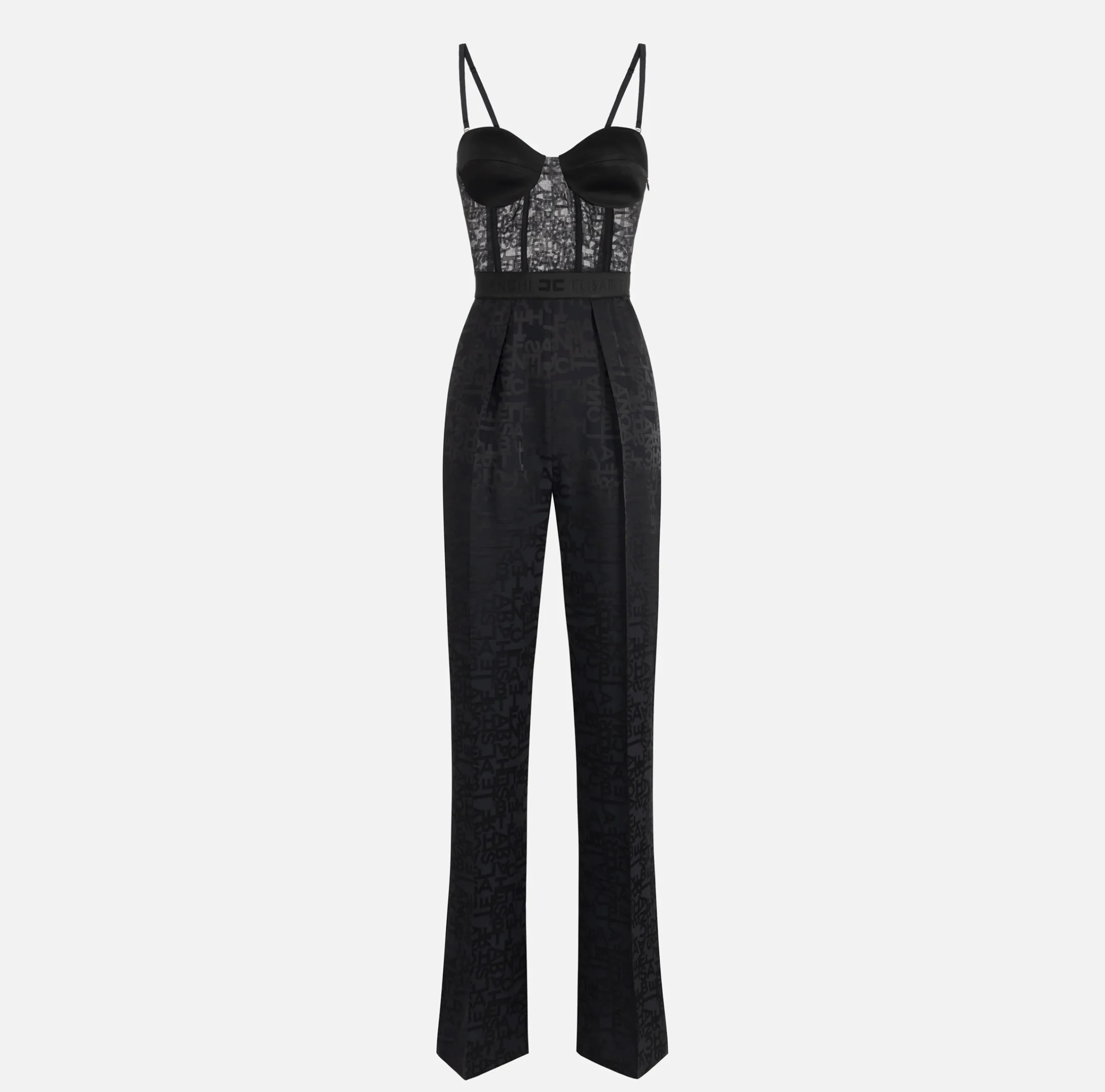 Tute|Elisabetta Franchi Tuta combinata in crêpe jaquard lettering Nero