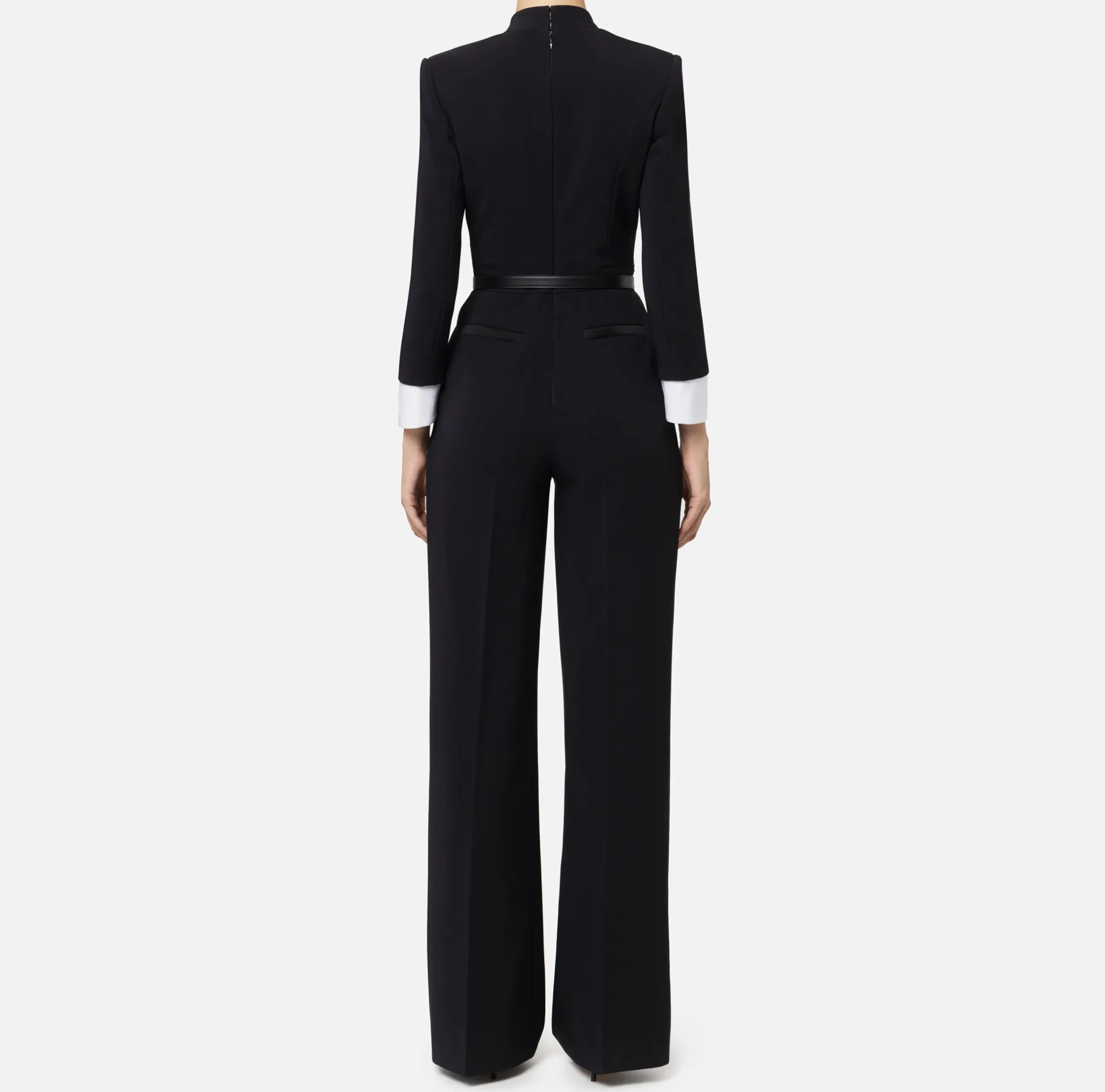 Tute|Elisabetta Franchi Tuta in crêpe stretch con revers in raso Nero